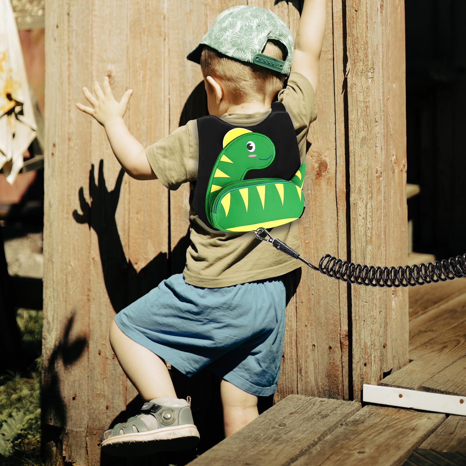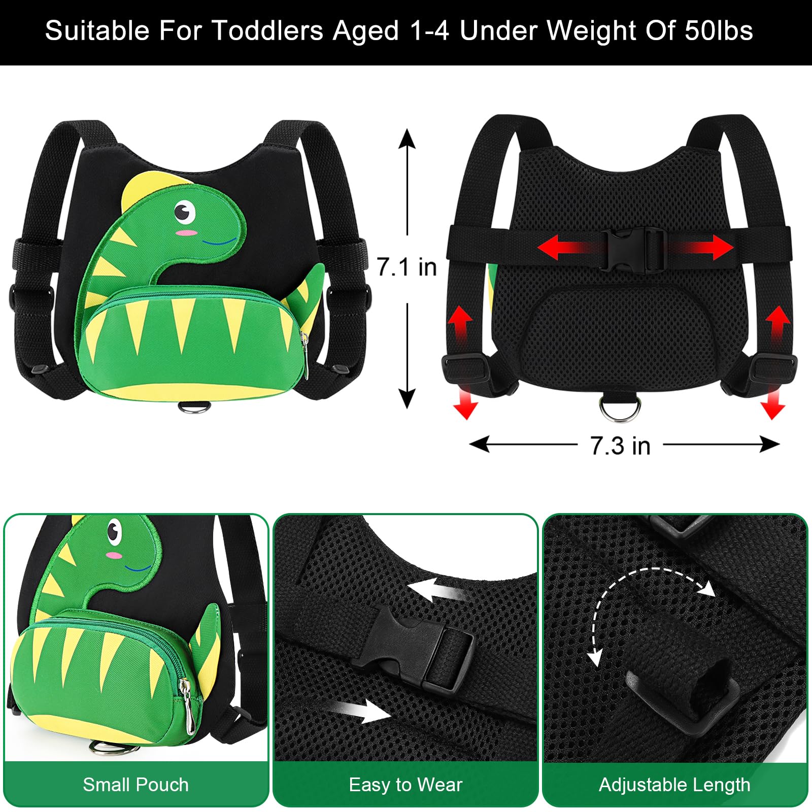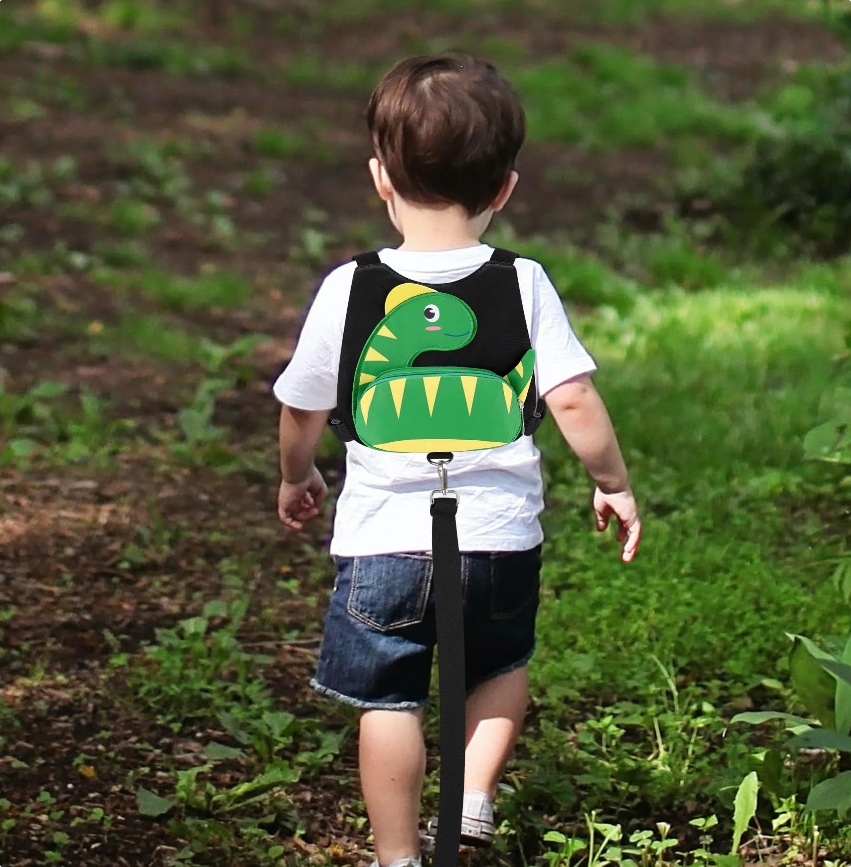 Adorable Design: Lovely and funny dinosaur pattern original designed keep kid innocent and stimulate imagination. Front extra pocket for snacks handkerchief, the equipped anti-lost rope or other mini necessities
