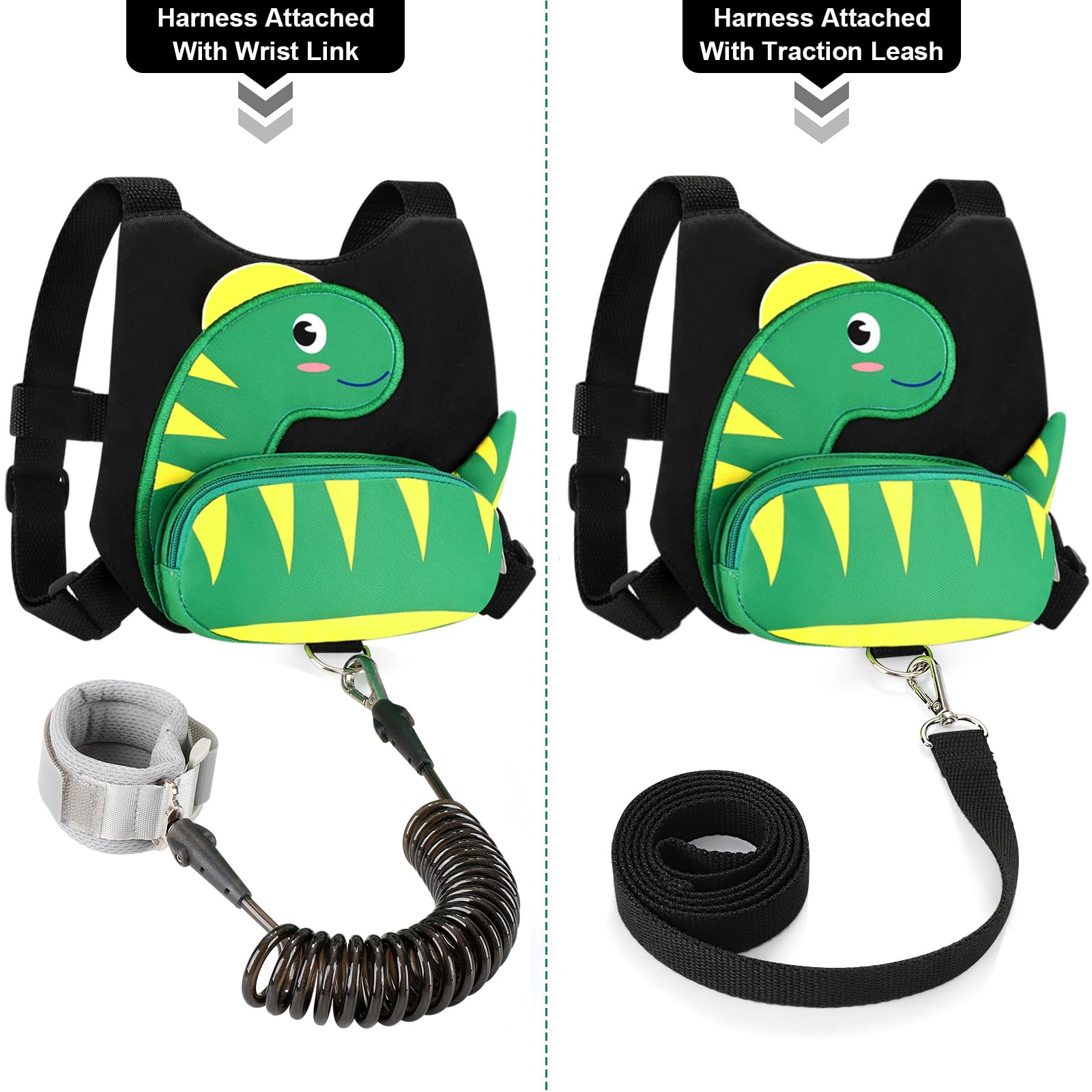 Accmor Toddler Harness Leash + Anti Lost Wrist Link, Cute Dinosaur Kids Harness with Leash, Mini Child Harness Leash Wristband Tether Protector for Baby Boys Girls Age1-3 Years Old to Outdoor Travel