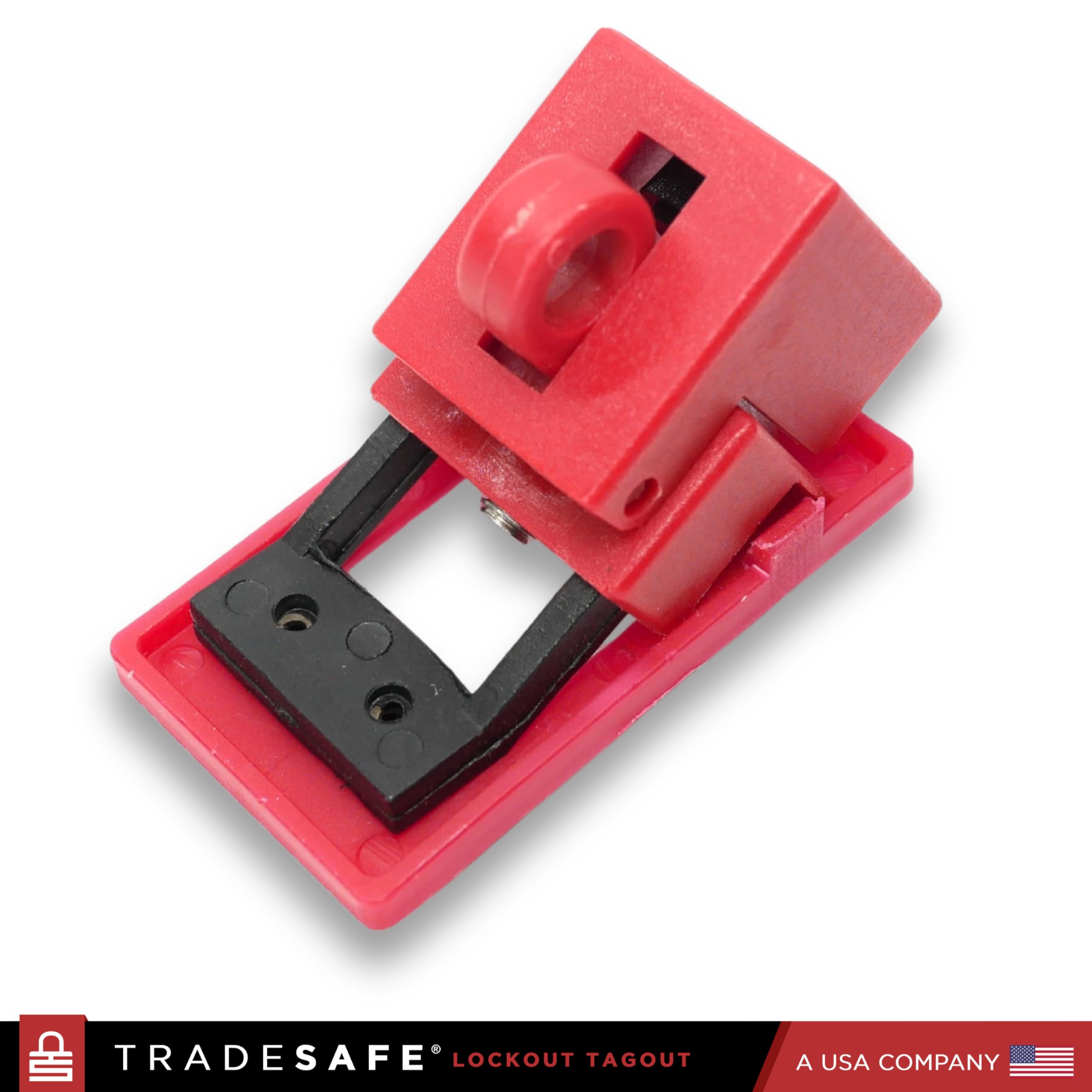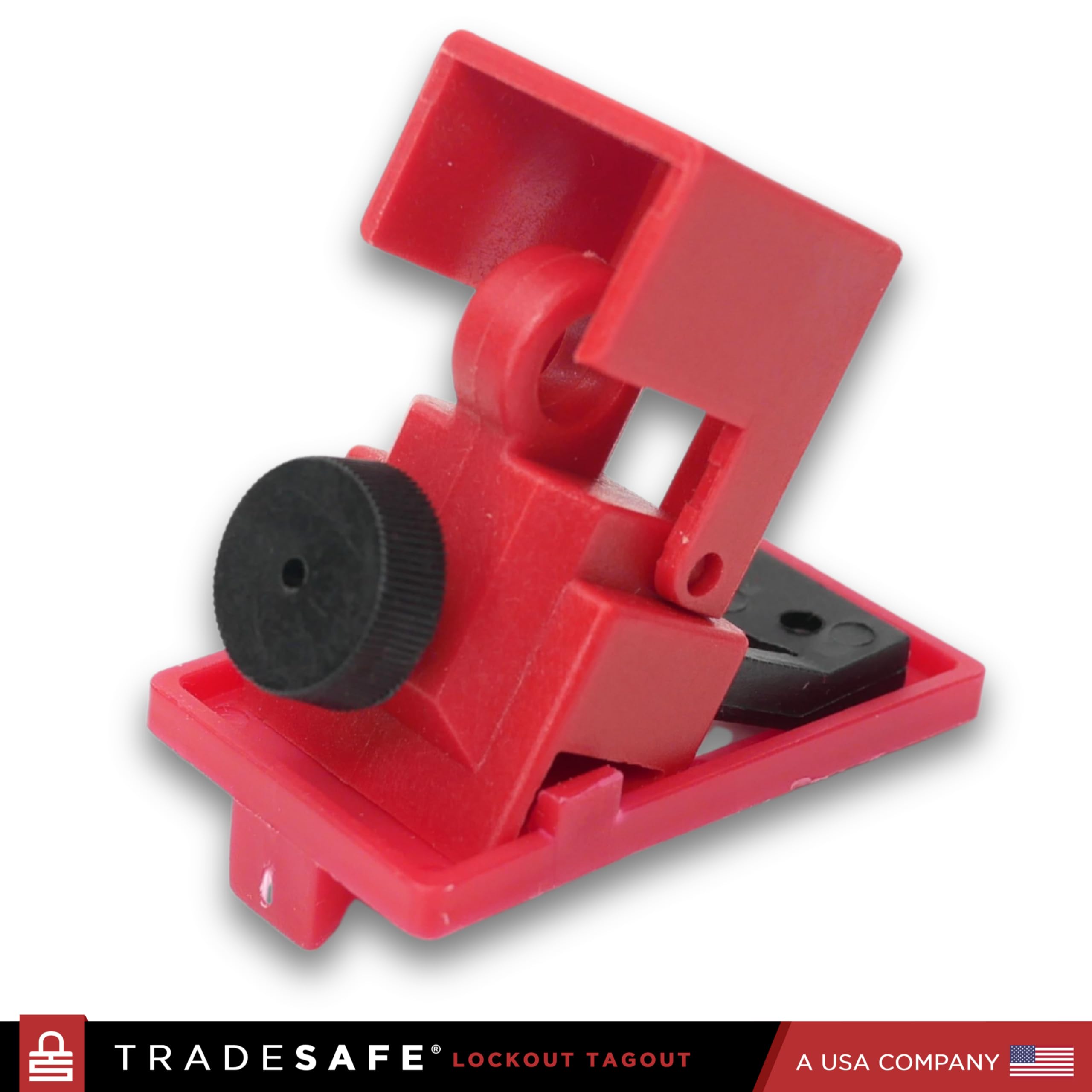 Rugged Circuit Breaker Locks - Single handle lockout breaker made of impact-resistant, non-conductive red polypropylene and black nylon, suitable for heavy industrial use