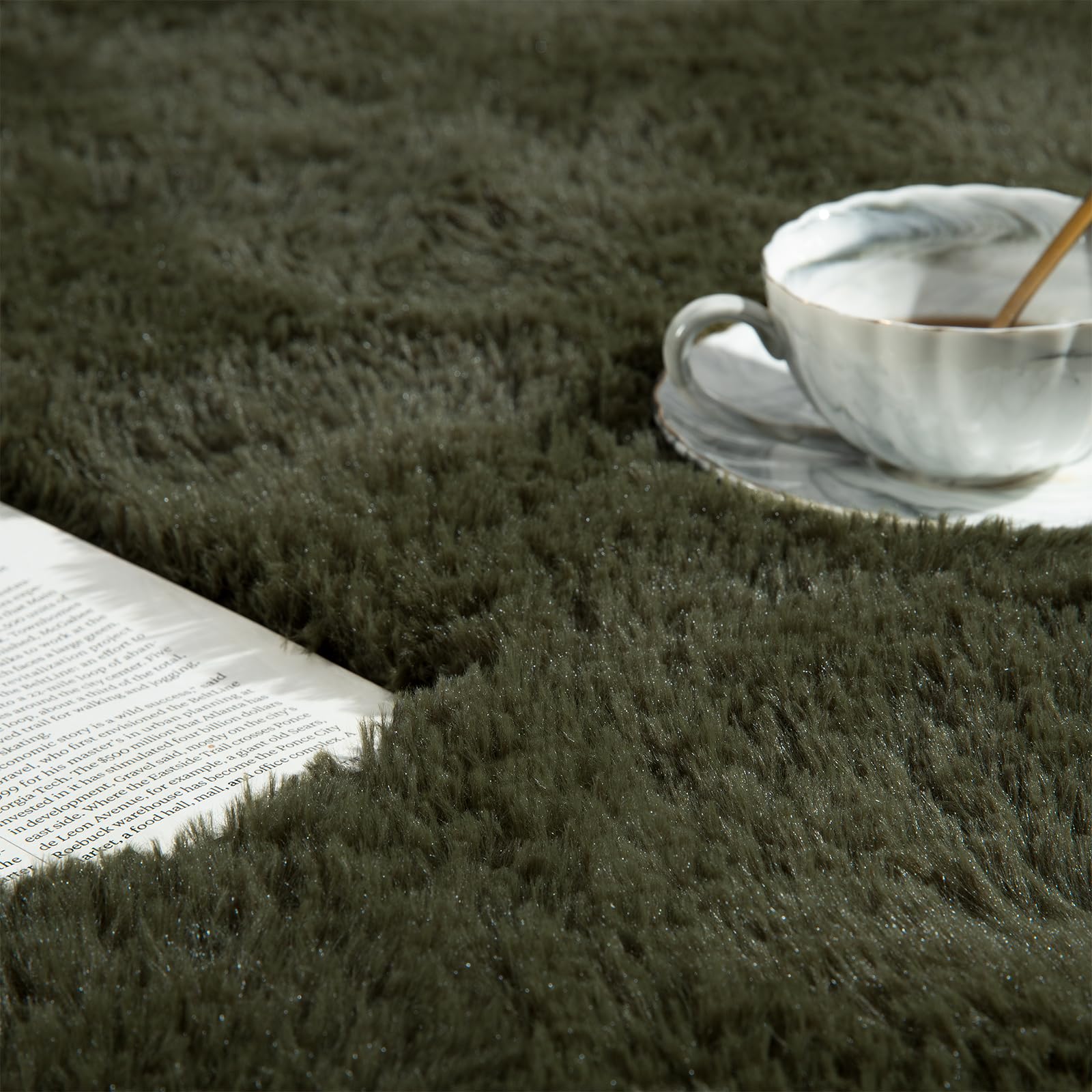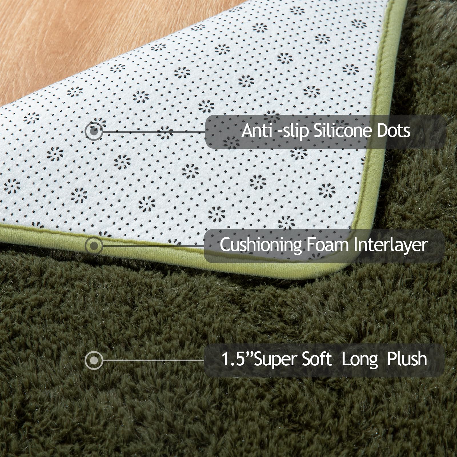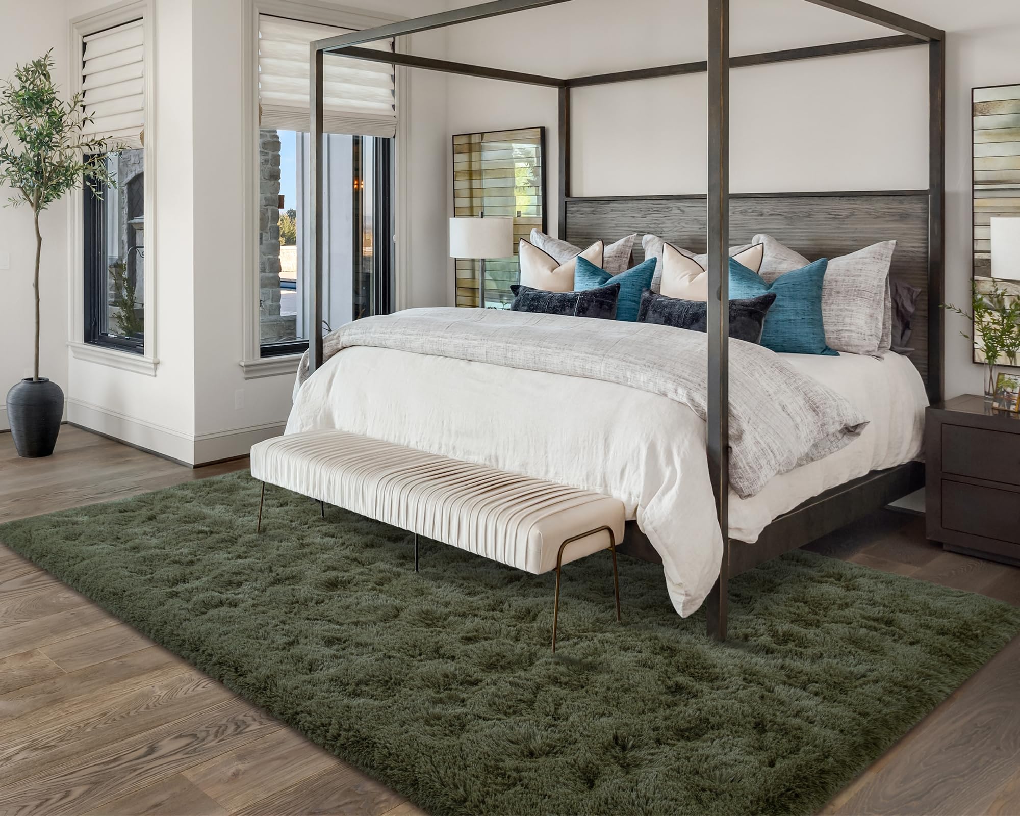Super Soft: Bedroom rug provides cushioning and warmth, muffles sounds, and adds a decorative layer to a room. The simple shag design of this fluffy rug is made from a silky-smooth synthetic material thatβs ideal for relaxing on
