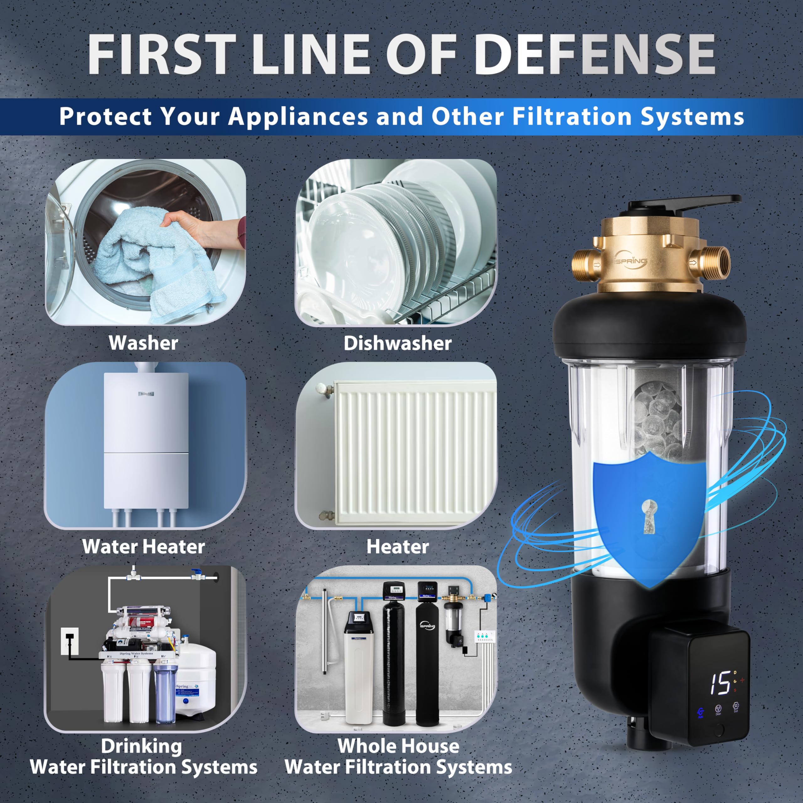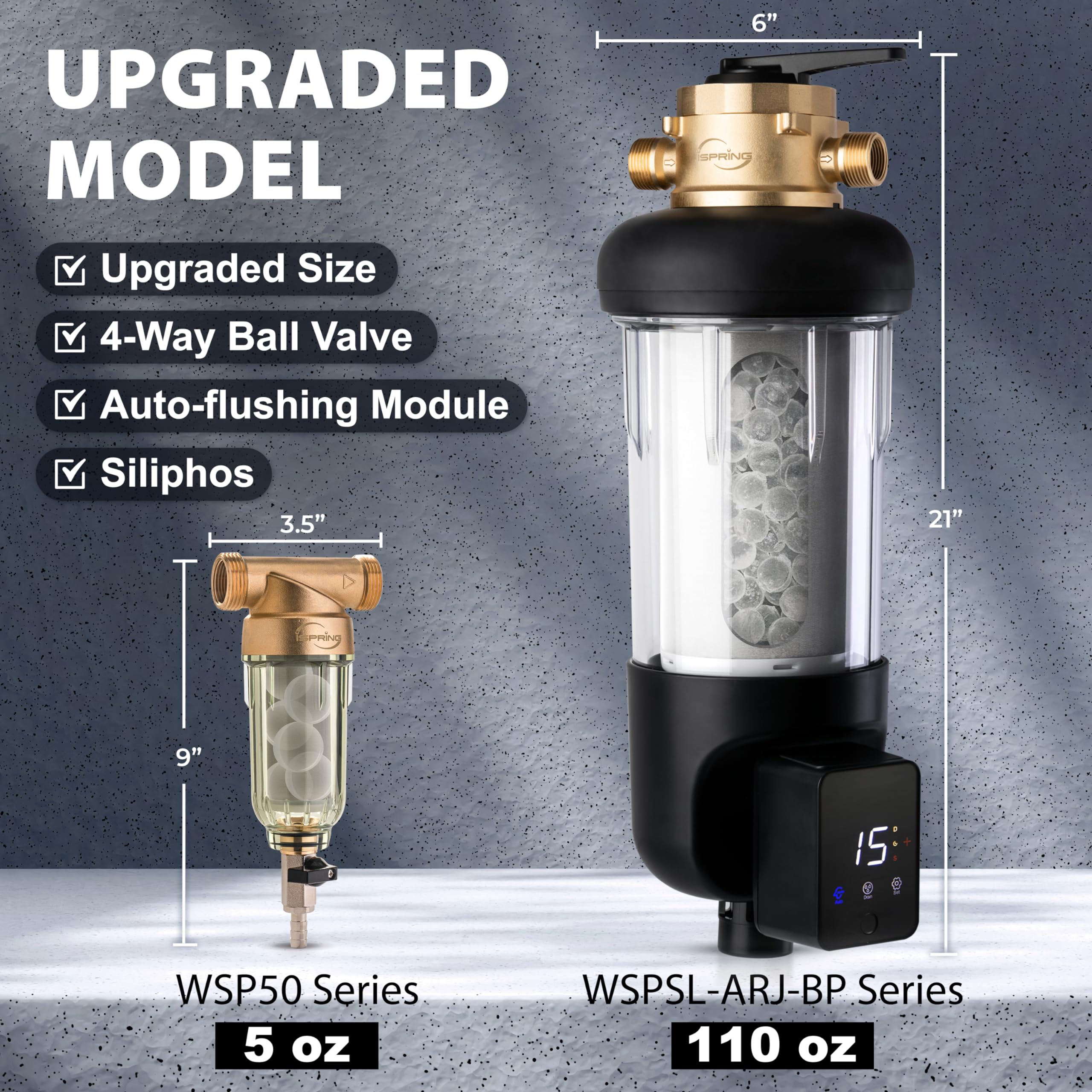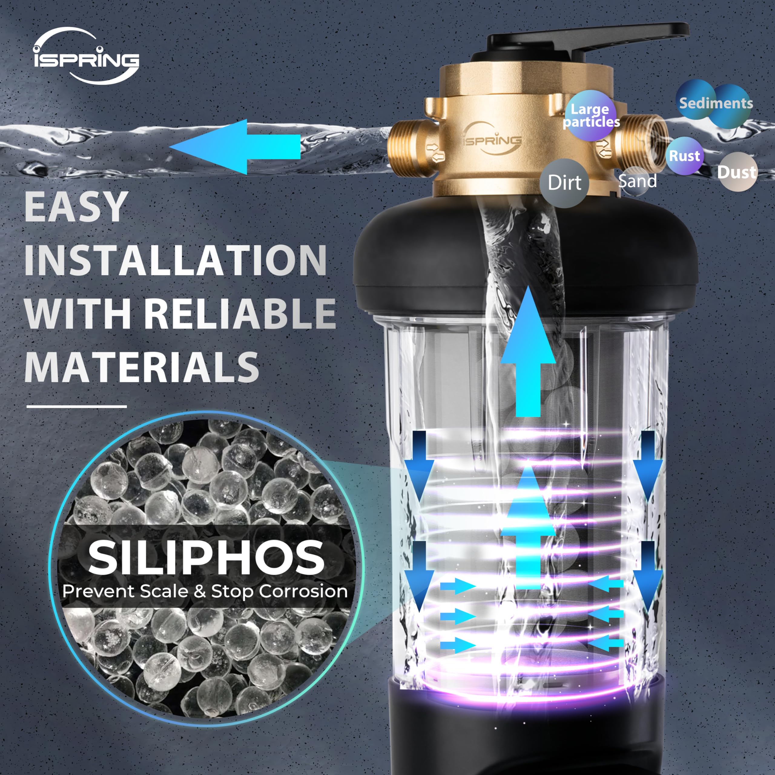 [Pressure-resistant and Durable Materials] Crafted from 316L food-grade stainless steel, the precision filter mesh in the iSpring WSP50SL-ARJ-BP ensures exceptional durability. The explosion-proof transparent housing offers visibility and convenience.