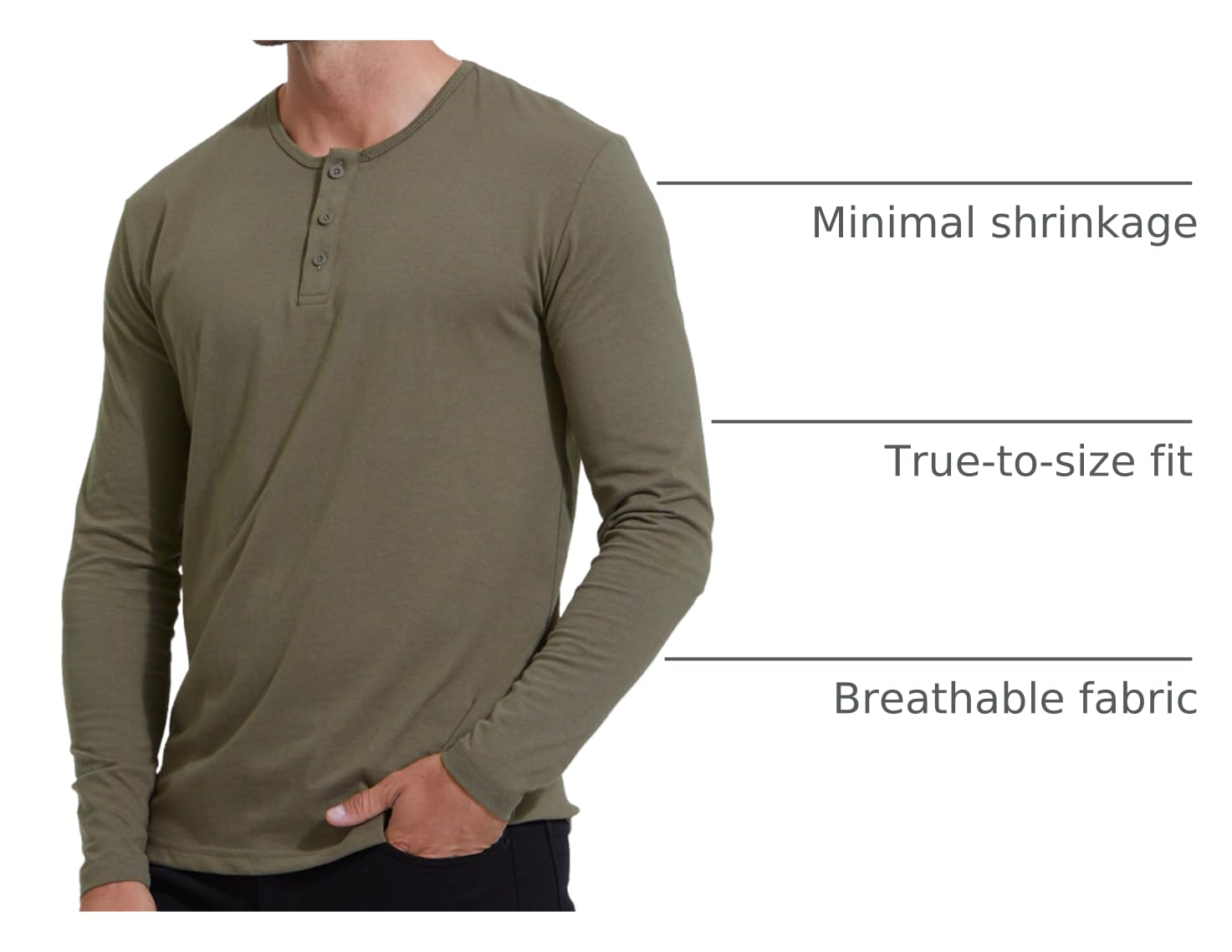 THREE WAYS TO WEAR: Choose your mens long sleeve shirt pack from our classic crew (60% combed ringspun cotton/40% polyester jersey), henley shirts for men long sleeve (same soft blend) or the thicker waffle-knit (49% Modal/49% Cotton/2% Elastane).