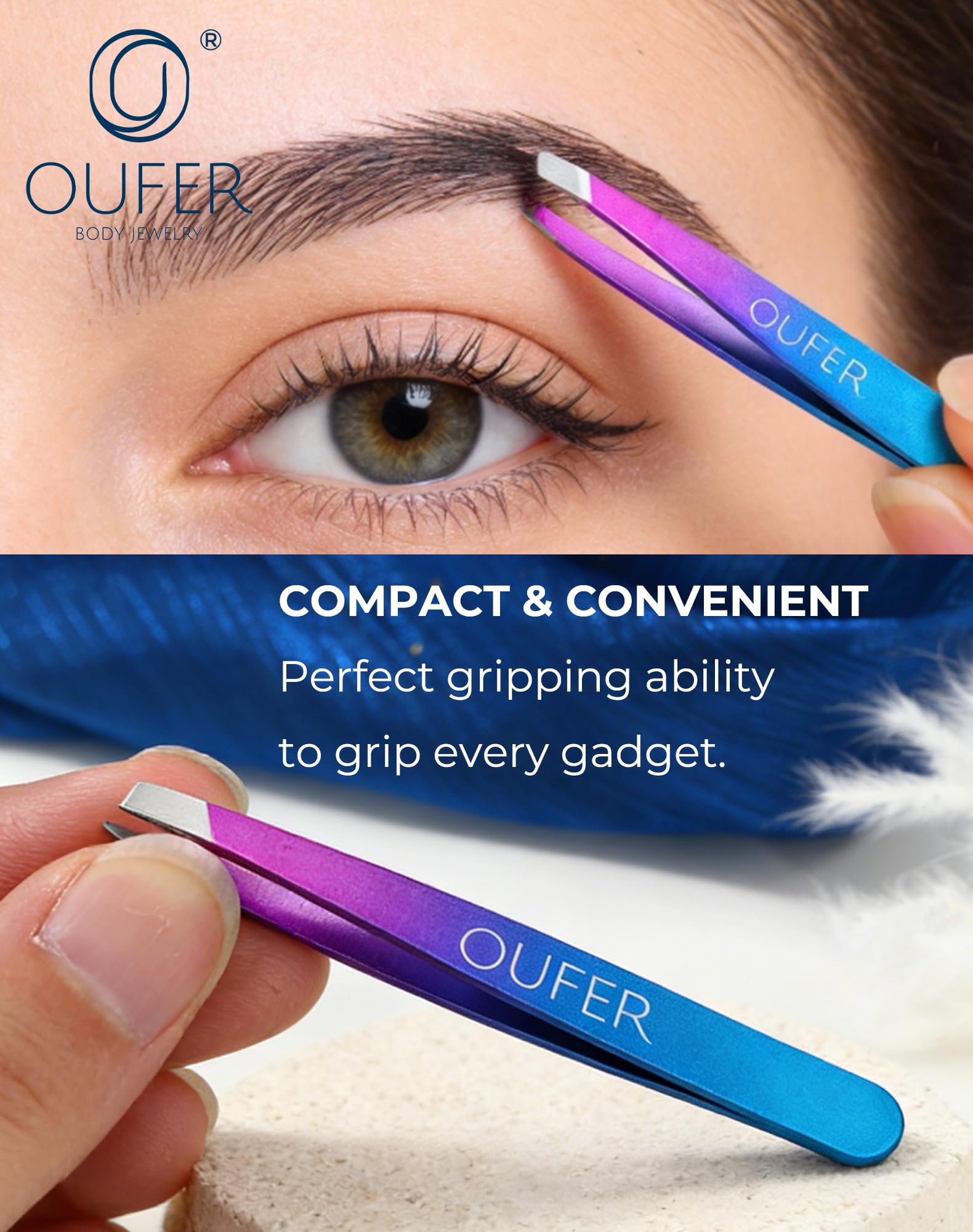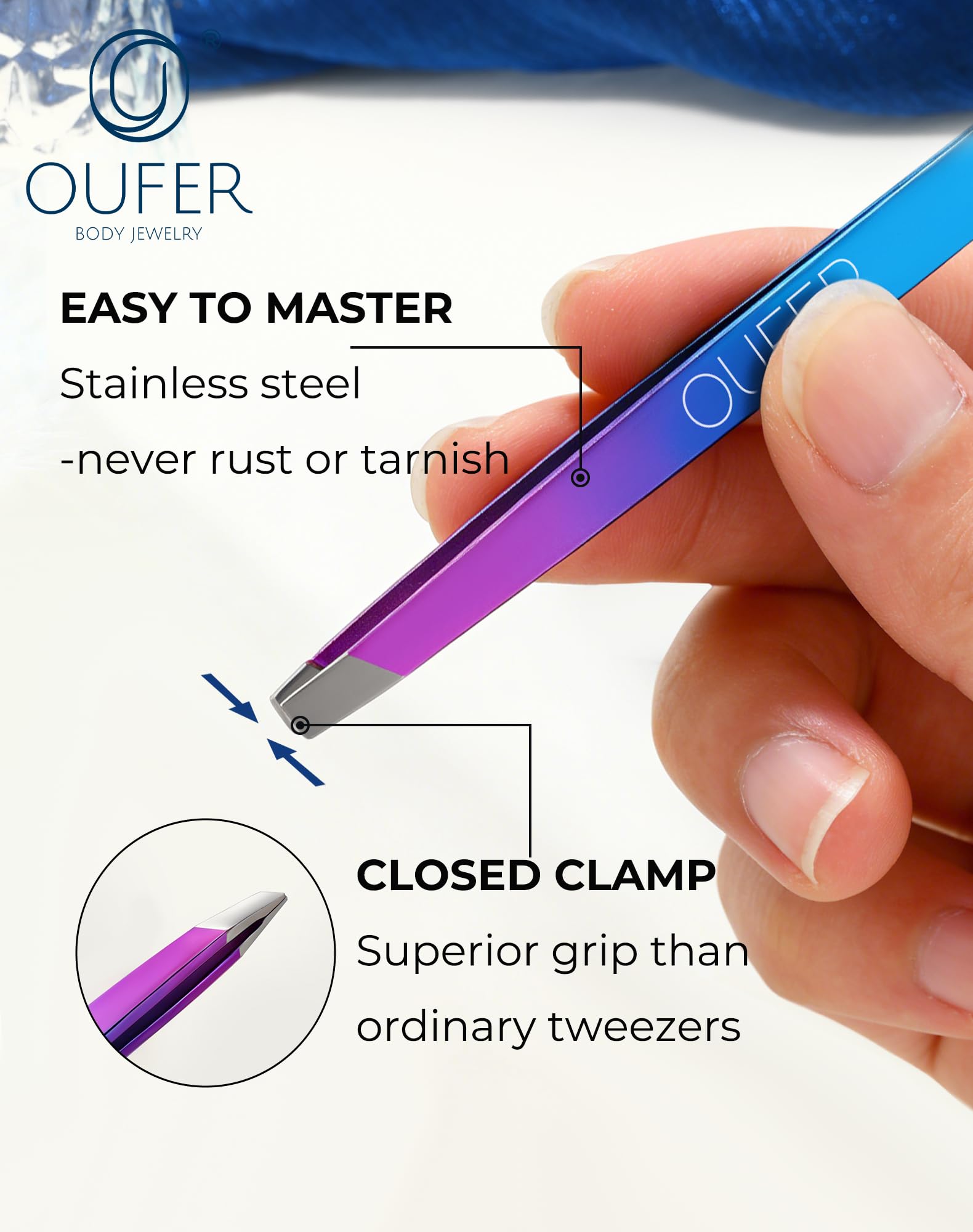 [Material] The Hinged Clicker Segmen Tool is crafted from durable 316l stainless steel, Employs gradient blue-purple gold plating process, ensuring long-lasting use. making it a reliable grabber reacher tool for changing piercing jewelry.