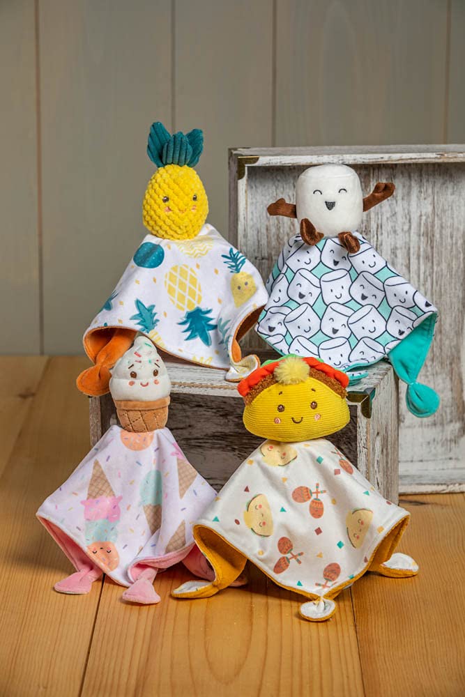 As much fun for mom as for baby, Soothie Blankets get a knowing laugh. You’ll love the sweet smiling faces that engage baby and familiar everyday objects full of personality. Each Soothie is a soft toy atop an attached 10 x 10-inch blanket with gathered corners (babies love to chew on the bunched up fabric). Both the petite blanket and toy are super soft for babies in fabric textures that are fun for little fingers to explore. Ice Cream has an embroidered face with a sweet expression, rosy cheeks, and rainbow sprinkles—this character adds a touch of kawaii style to the nursery! Wash in cold water on gentle cycle, air dry. In 1933, Mary Meyer started sewing unique companions for her children and neighbors. To this day, here in the hills of Vermont, Mary's grandchildren and great-grandchildren continue that same tradition of building care and comfort into everything they create. Whether it's picking out the perfect gift for a loved one, receiving a toy friend that will become a best buddy, or cuddling up with and enjoying the luxurious, premium fabrics of our soft toys—when it comes to Mary Meyer, it's love you can feel.