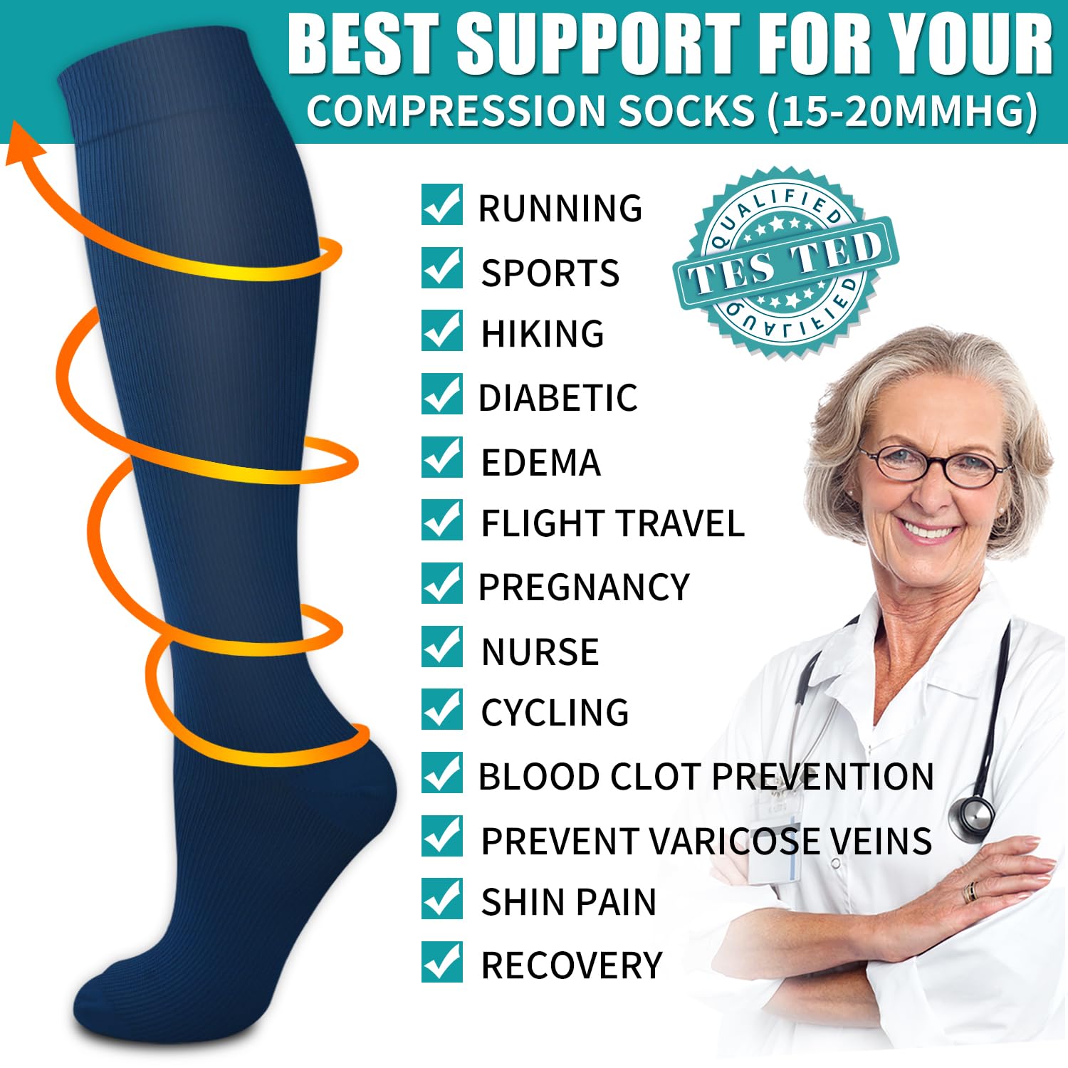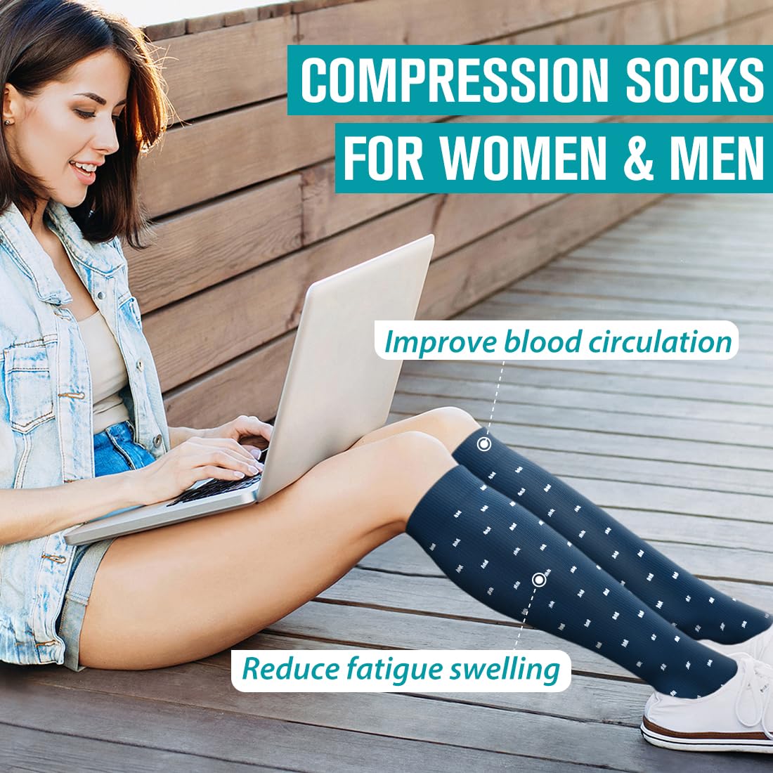 UPGRADE YOUR COMPRESSION SOCKS DRAWER! - With all the tasks of work and family (and of life itself!) we may forget to pay attention to and maintain the health of our legs. Our compression socks are designed to help increase circulation, improve leg and foot comfort, and reduce soreness and swelling, increase energy, All day comfort.Great for long periods of sitting or standing, endurance sports, flying and travel, post-workout recovery, pregnancy, and spider & varicose veins.