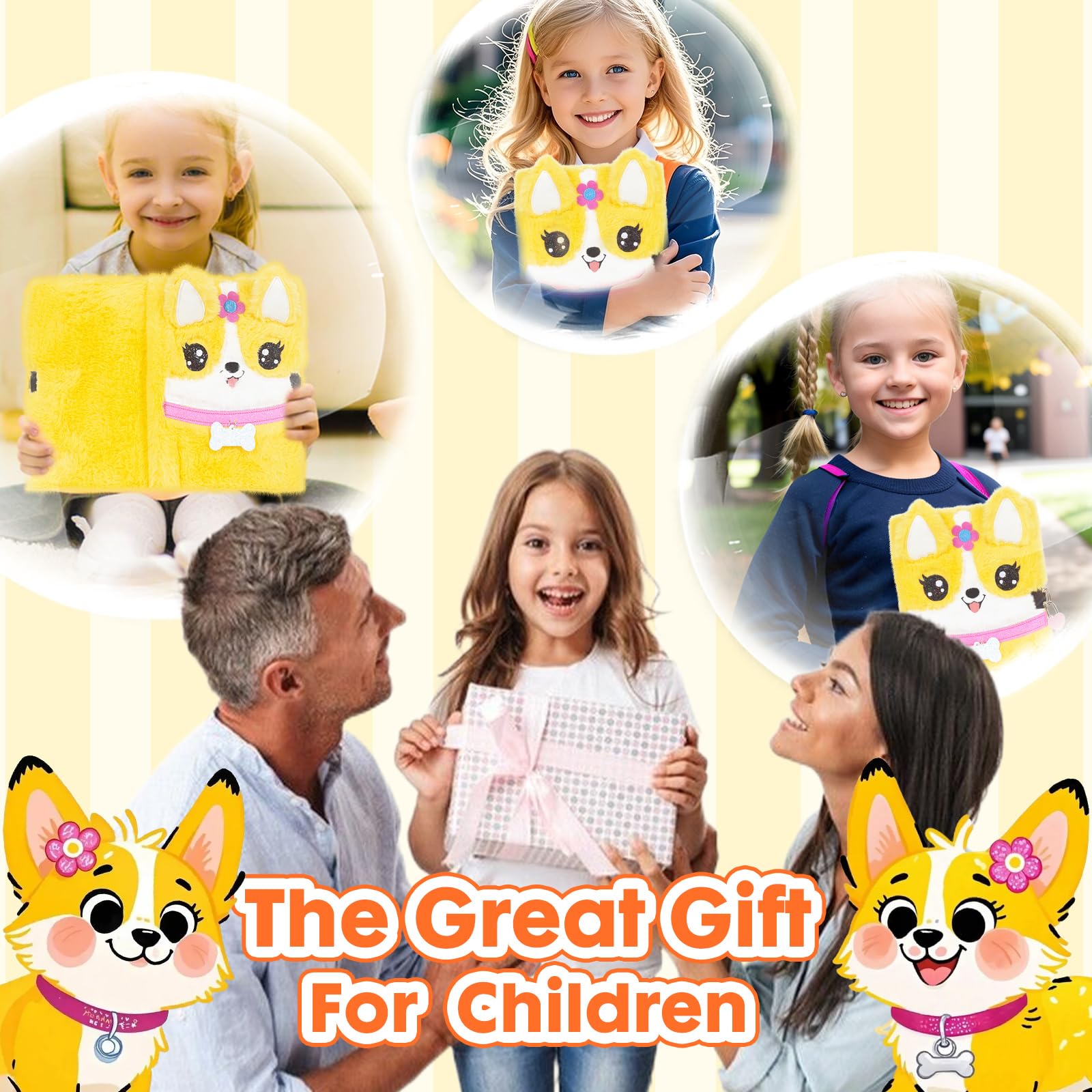 Plush Corgi Dog Journal: Dimensions: 6.65 x 8.43 x 1.18 inch; With 160 writing lined pages, 1 pink cute heart shaped lock, 2 silver keys; An amazing diary gift for little girls age 5-12 years old