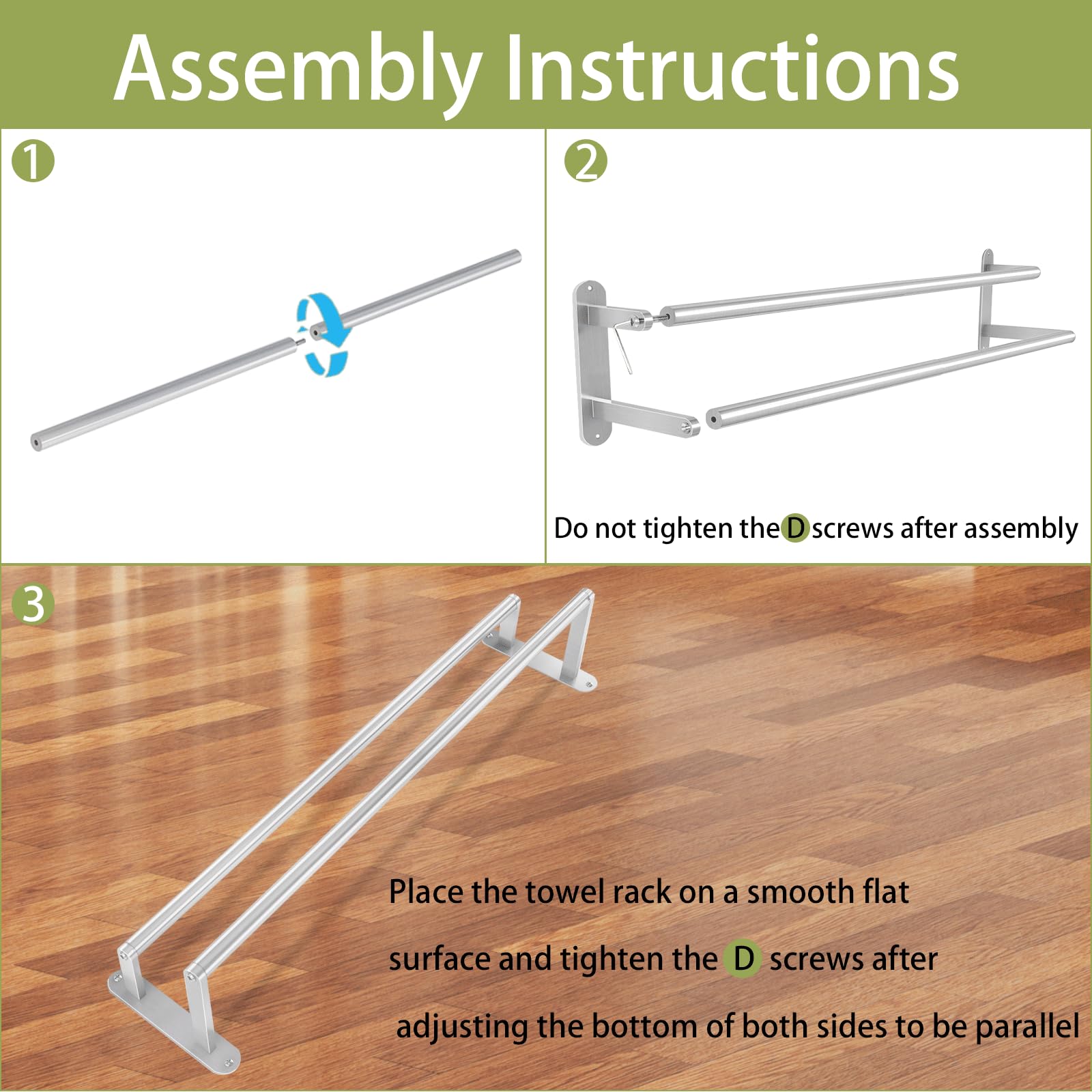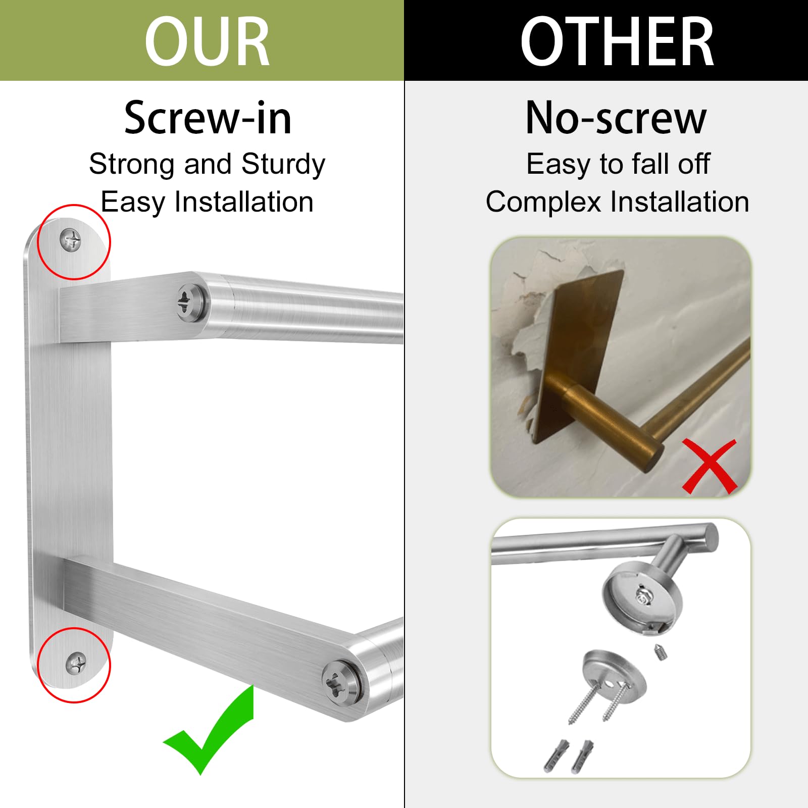 SCREW MOUNTING - Our double towel bar 24 inch is assembled and fixed with screws instead of welded design, sturdy and more load-bearing capacity, not easy to break and fall off