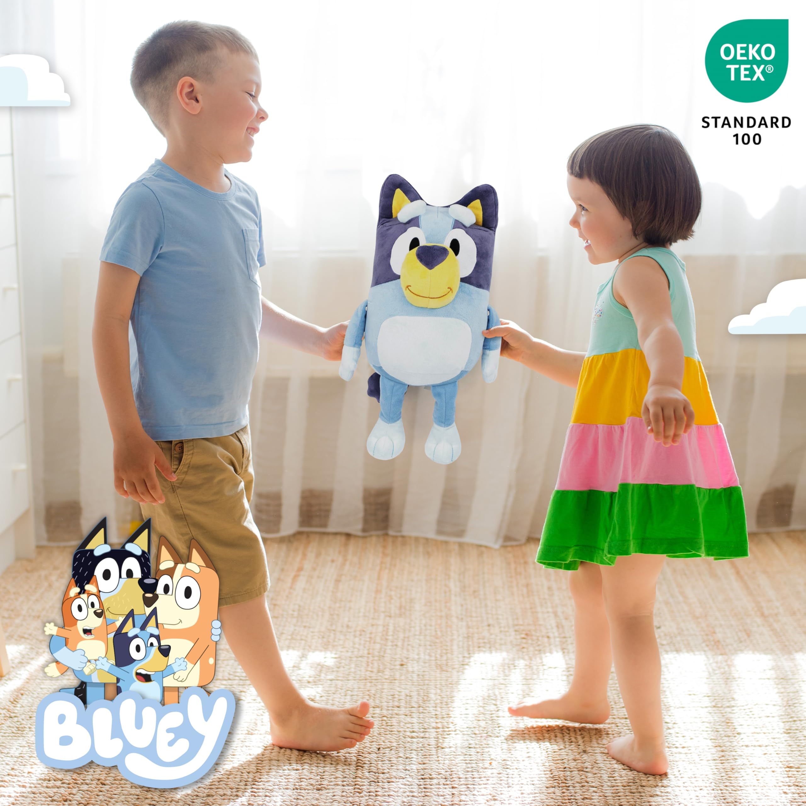 LONG LASTING & FUN SIZE - Thanks to Bluey's fun size cuddle time can be all the time; with every hug, your little one is sure to be smiling! Easy care spot clean only. Your child will never leave their pillow buddy behind!