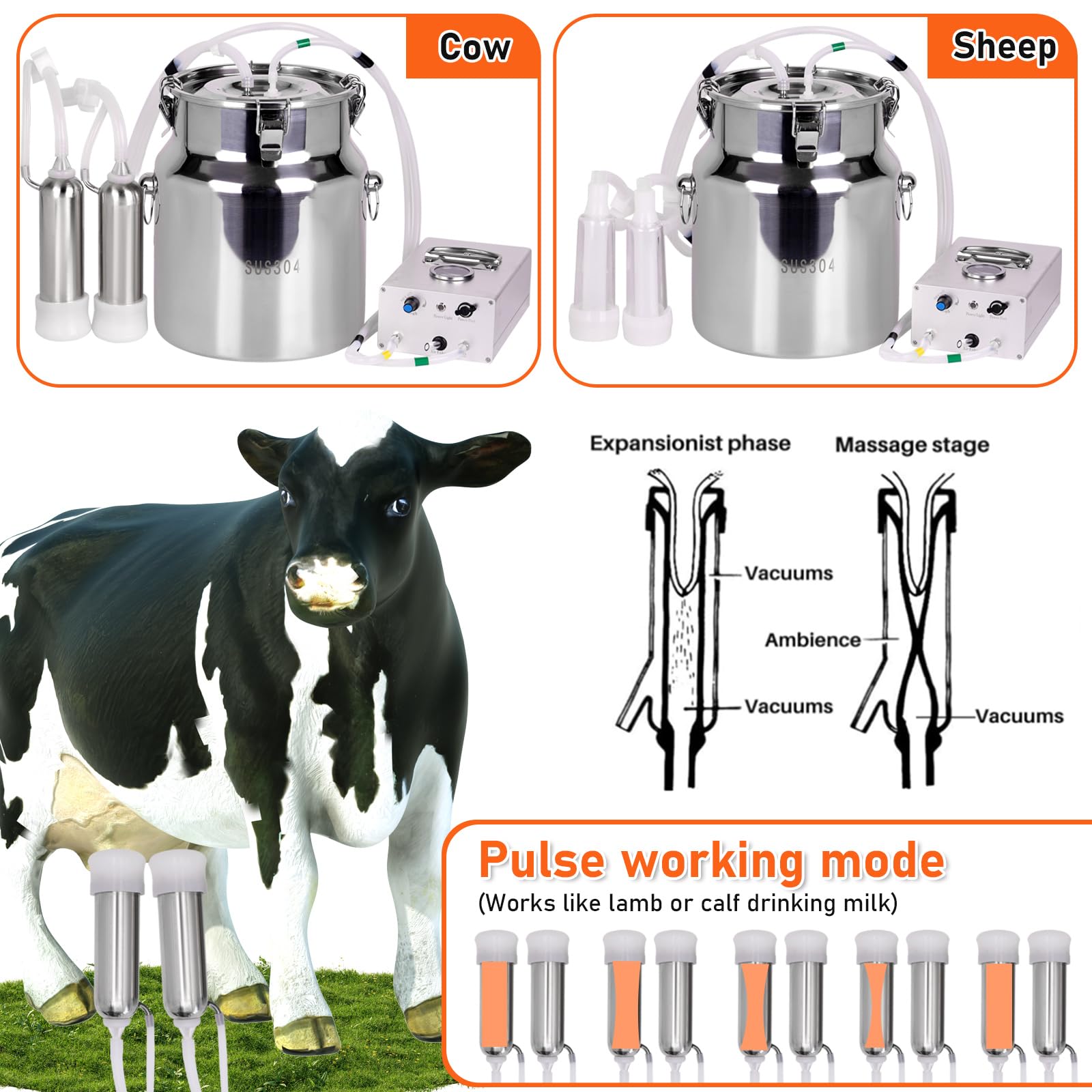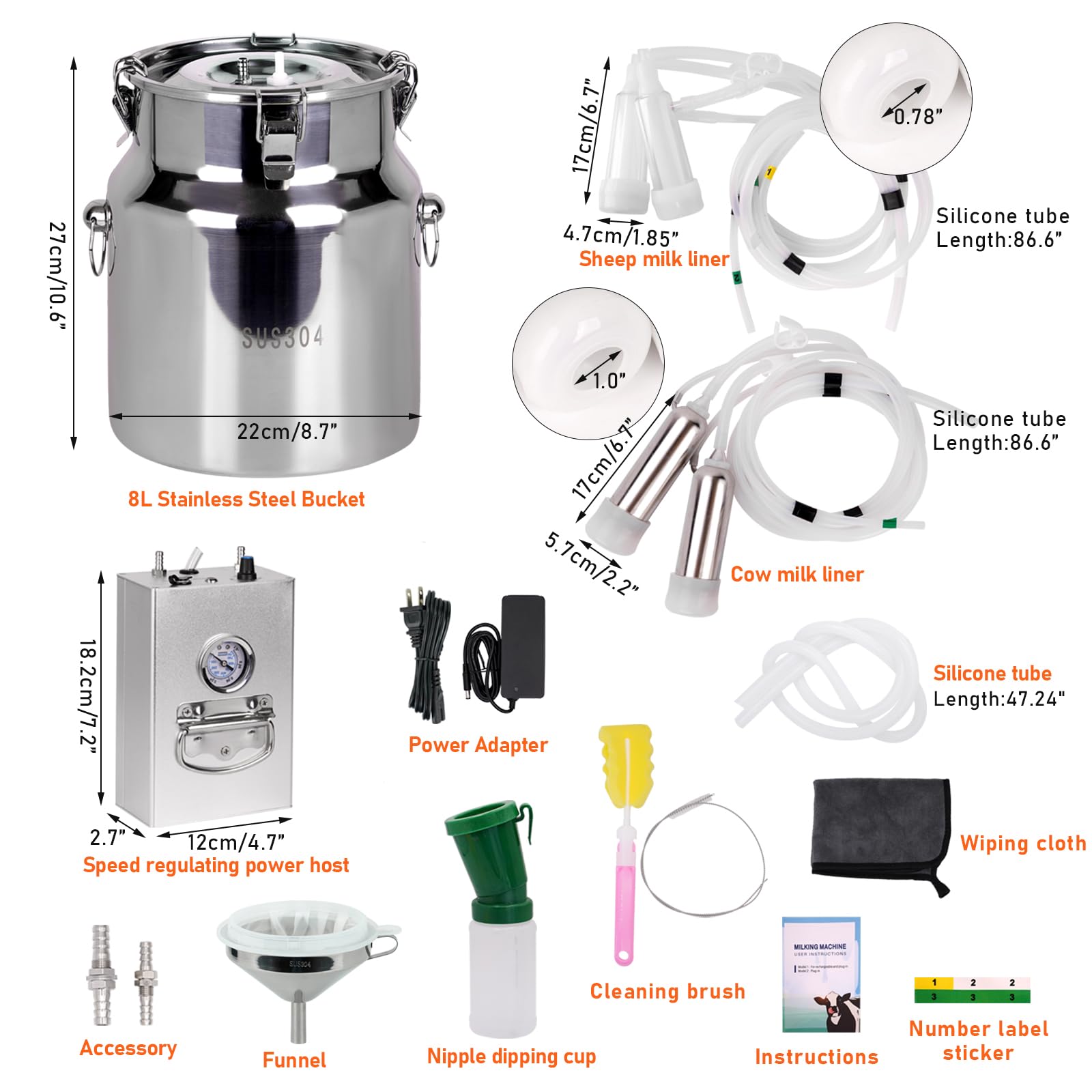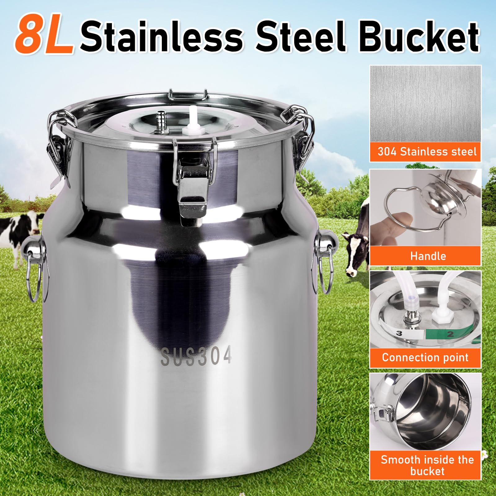 Materials: Our 8-liter milk pail is made of 304 stainless steel and comes with 4 feet of silicone tubing; This ensures pure milk for you