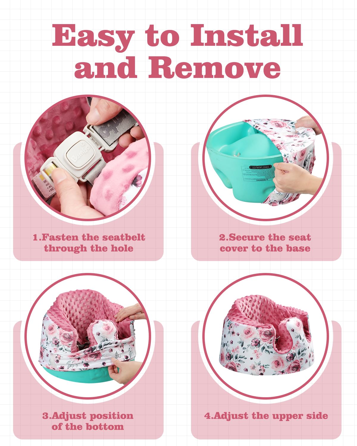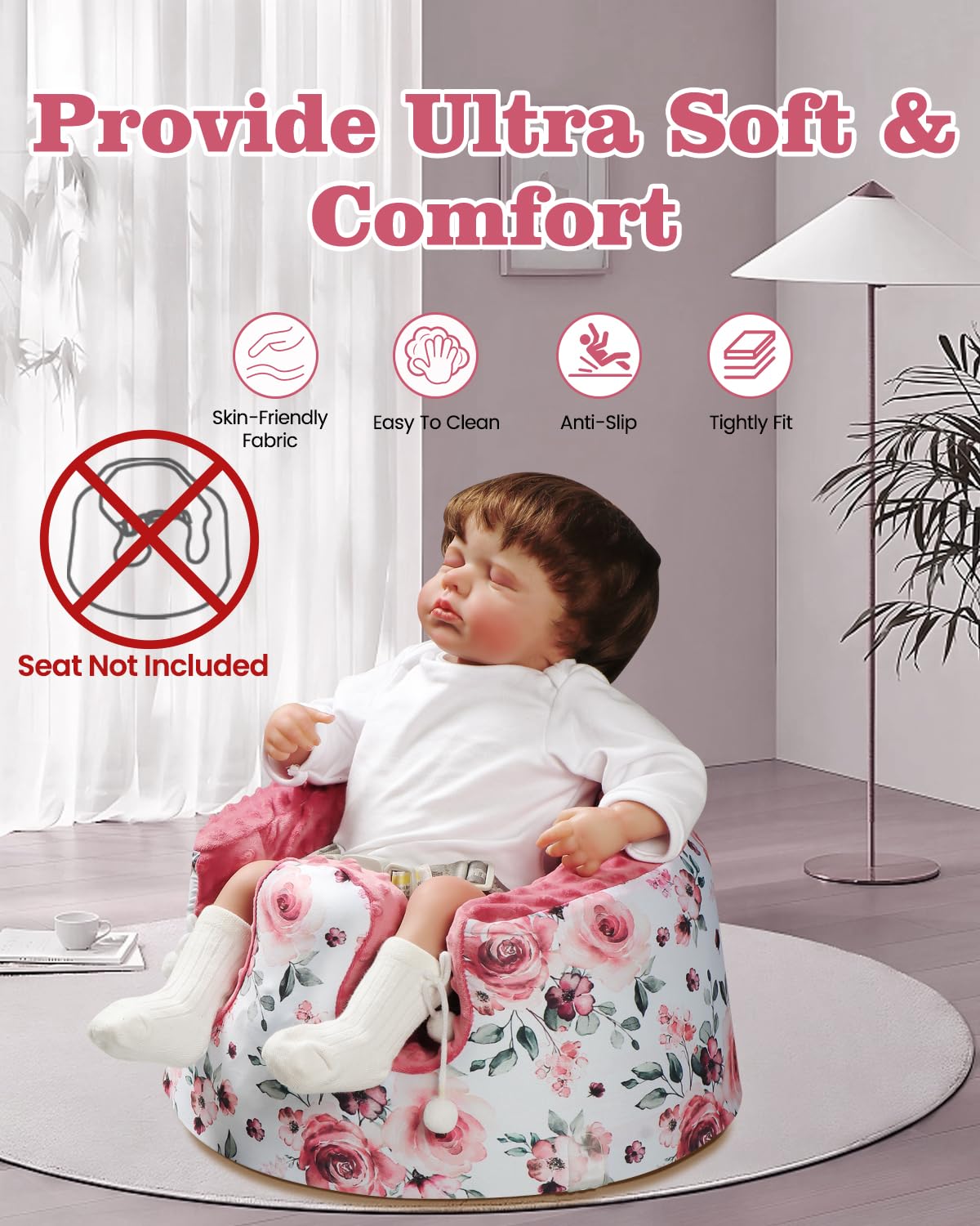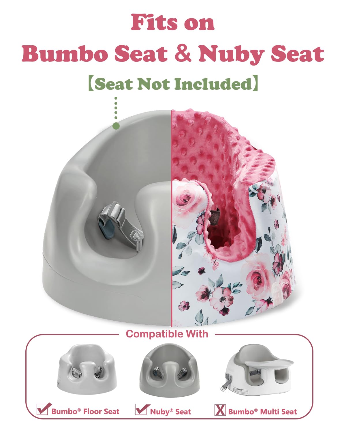 Compatibility: The baby seat cover is designed for Bumbo and Nuby seat, perfectly fits the Bumbo floor seat and Nuby floor seat, the cover helps to make baby sitting in the seat more comfortable and also keep the original seats cleaner.After using the seat cover, you can still turn the Bumbo tray. Seats NOT included