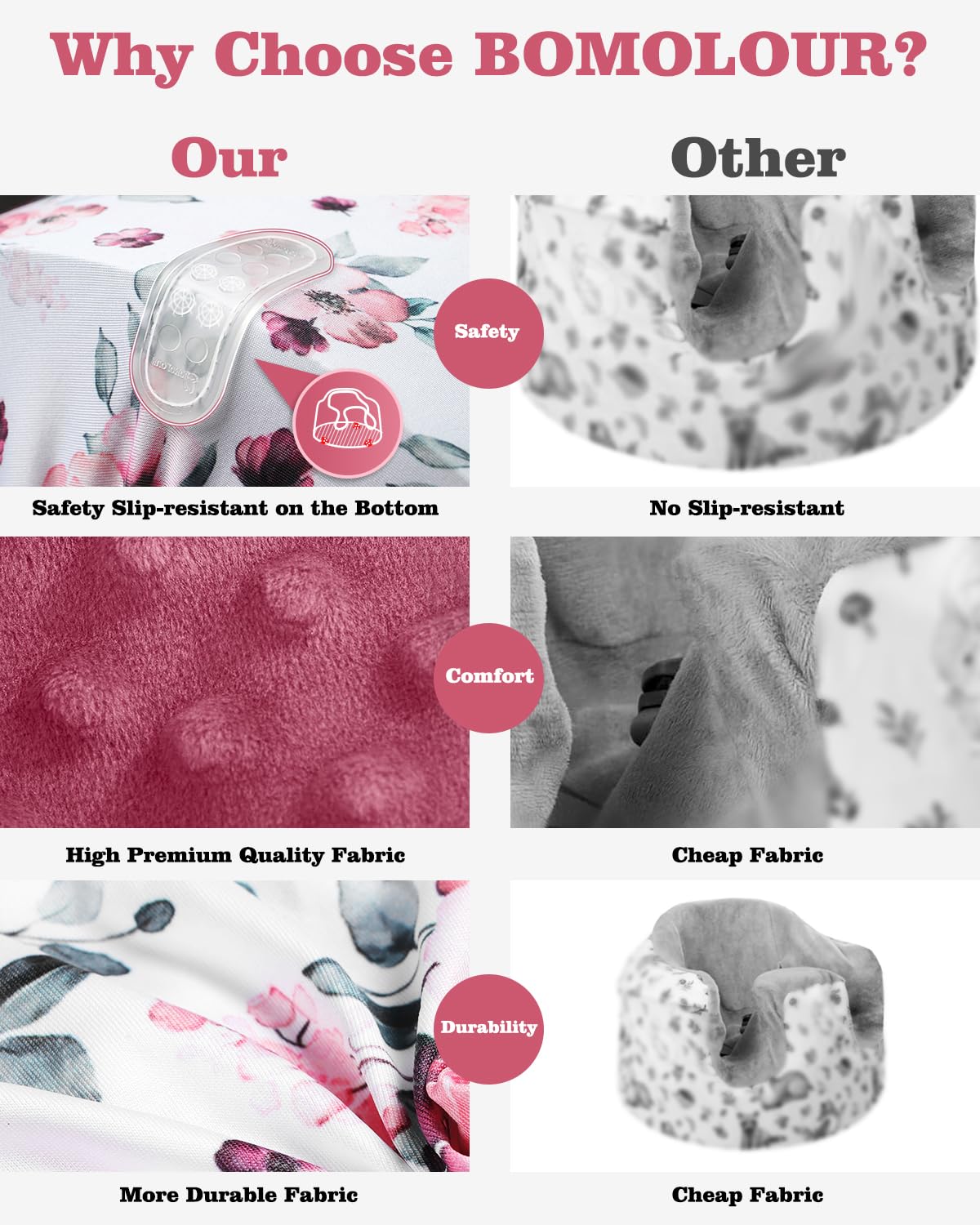 Boho Pattern: The BOMOLOUR for Bumbo seat cover and Nuby seat cover, desinged with popular cute boho flower pattern, it's not only an accessory for booster floor seat but also a decoration for your seat, colorfast and mashine washable, help to leave your little one a more colorful world