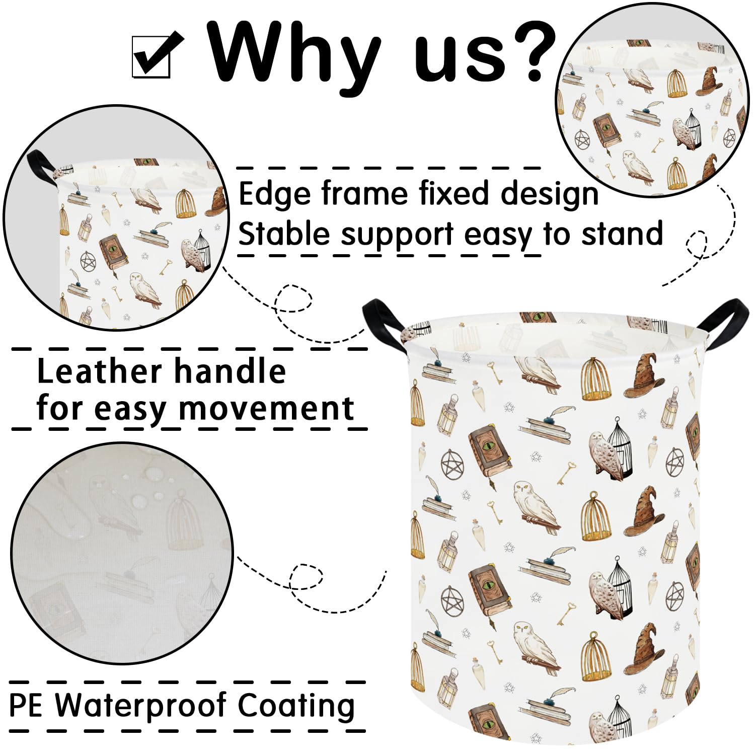 ❀{MATERIAL}:High quality cotton linen canvas (suitable for kids' clothes and toys) + lined with waterproof PE coating (easy to clean) +leather handle (lightweight and portable). Light and practical, easy to carry and store, necessary for home!