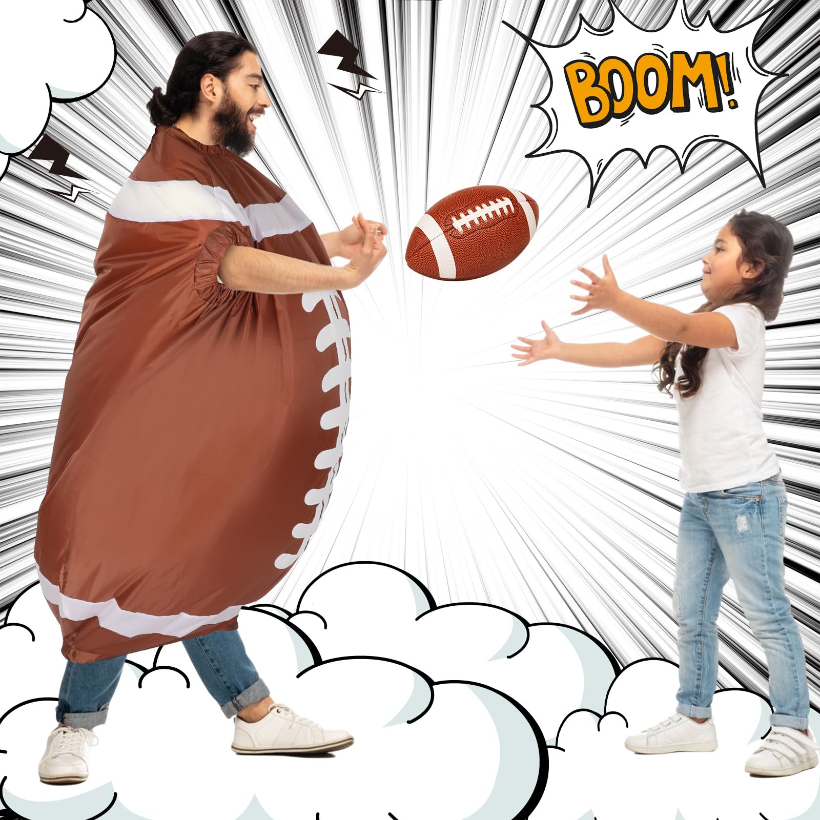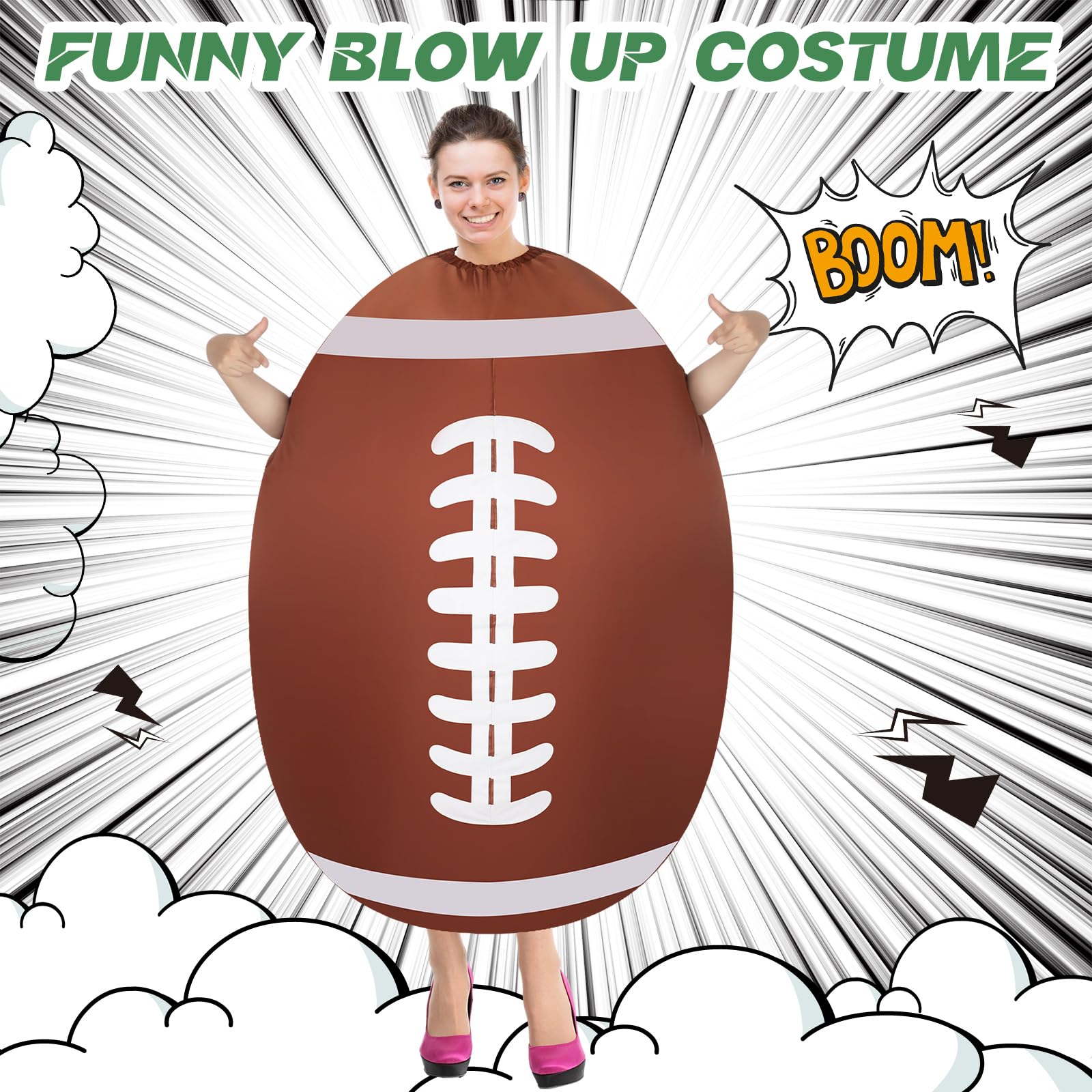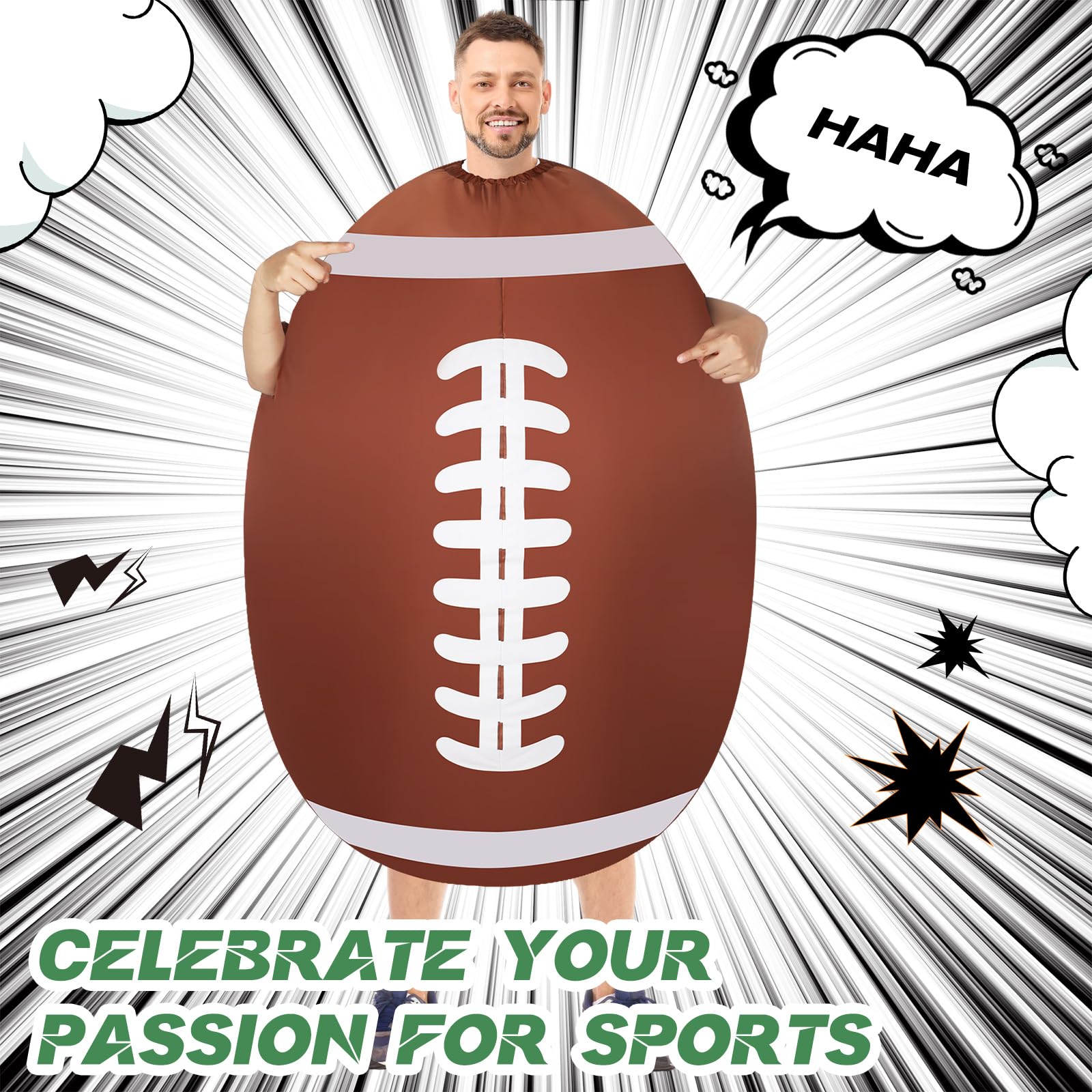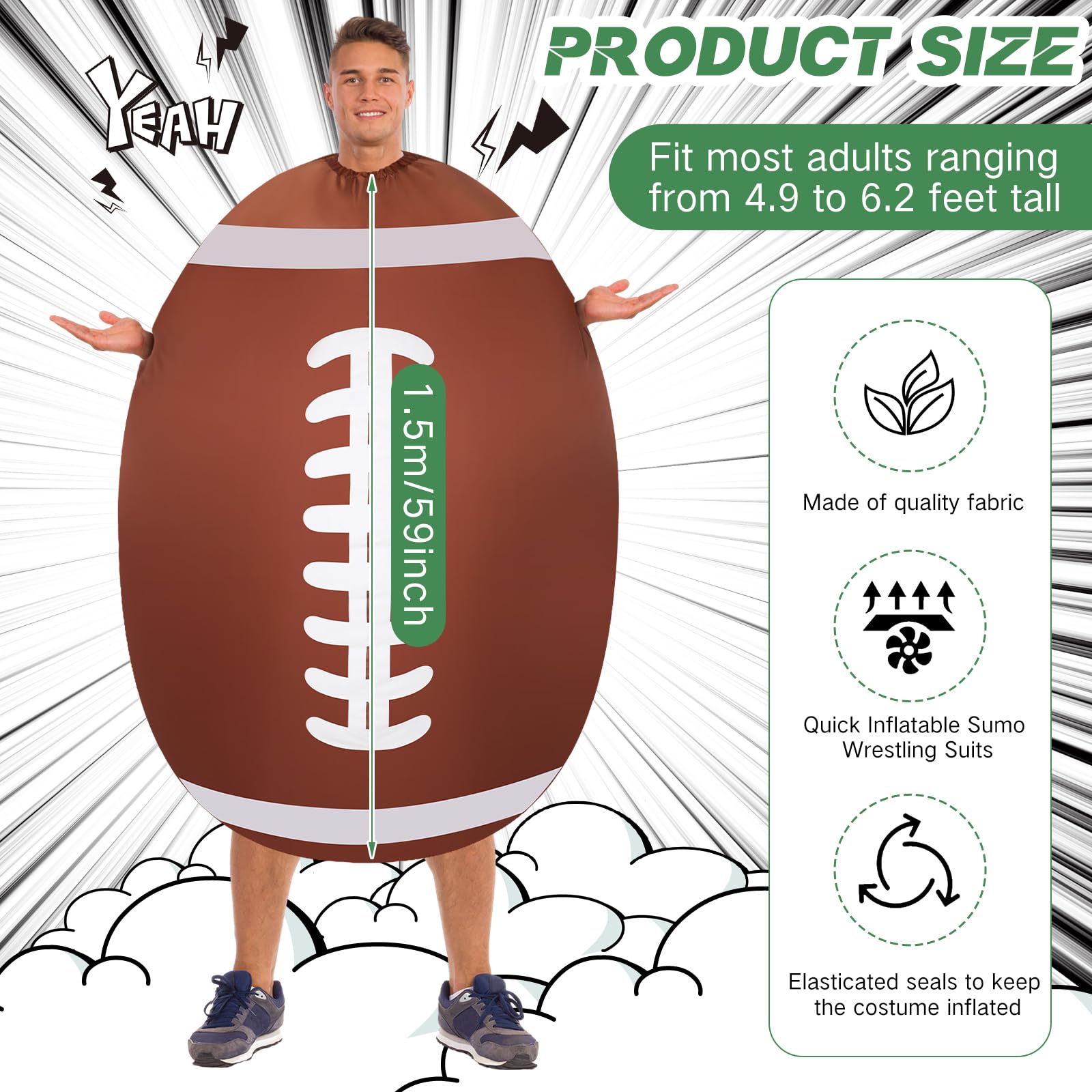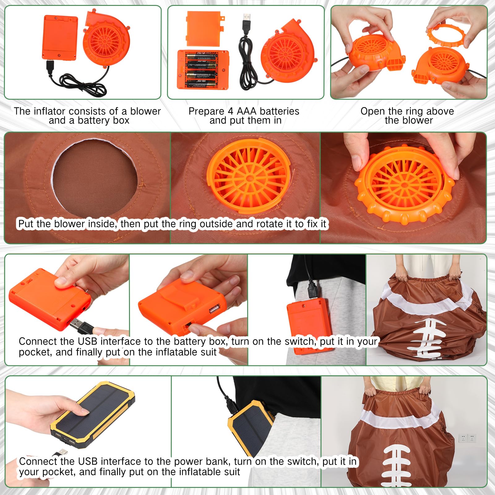Experience Game Day Differently: turn ordinary into extraordinary with our adult inflatable football costume including 1 fan and 1 battery box; Please note that batteries are not included, and you need to prepare 4 AA batteries; It's ideal for sports themed events, parties, or just a friendly afternoon get together