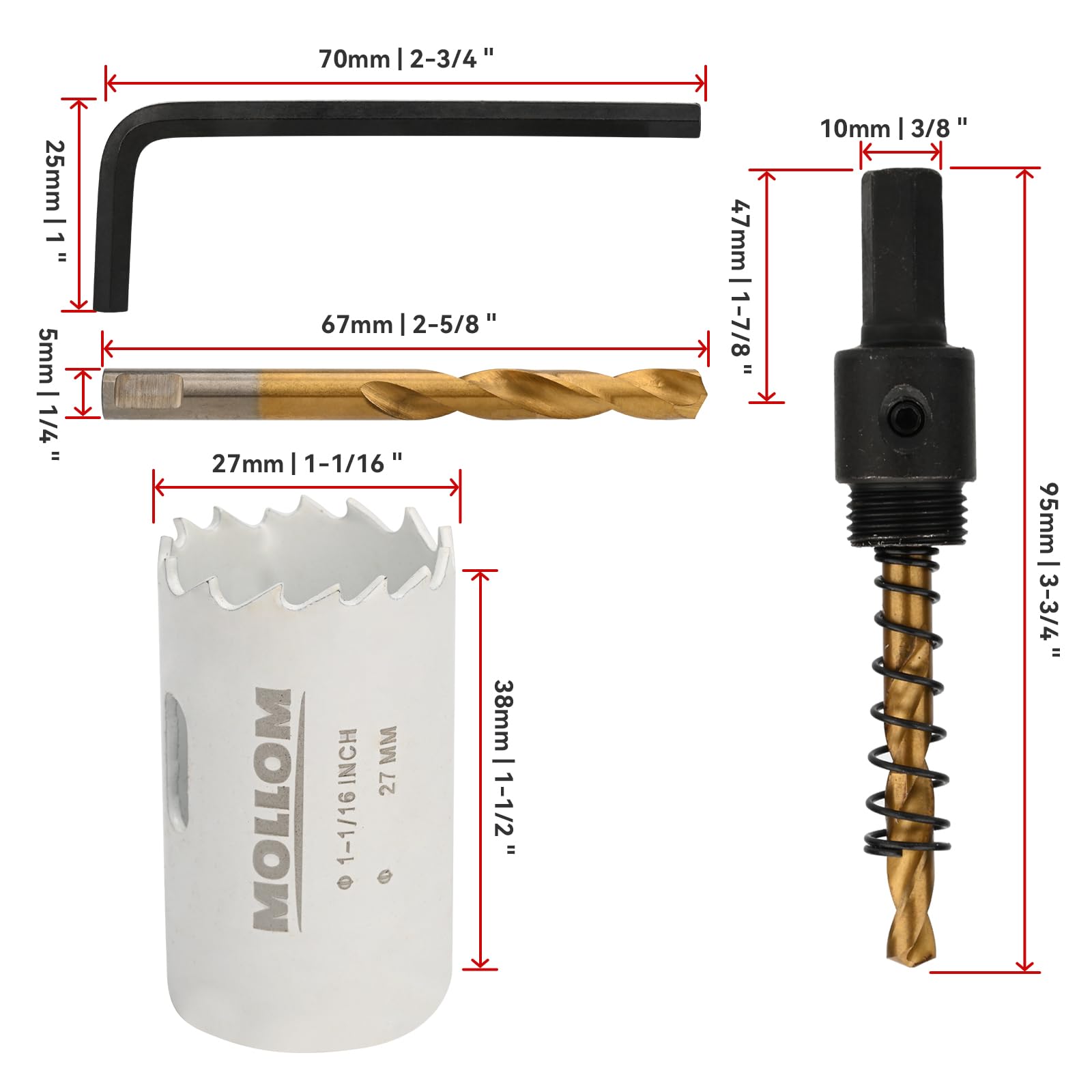 【Dimension】Cutting Dia: 27mm | 1-1/16";Shank Dia: 10mm | 3/8" ;Hole Saw Depth : 38mm | 1-1/2".Adopting raw materials of Japanese brand sawbands