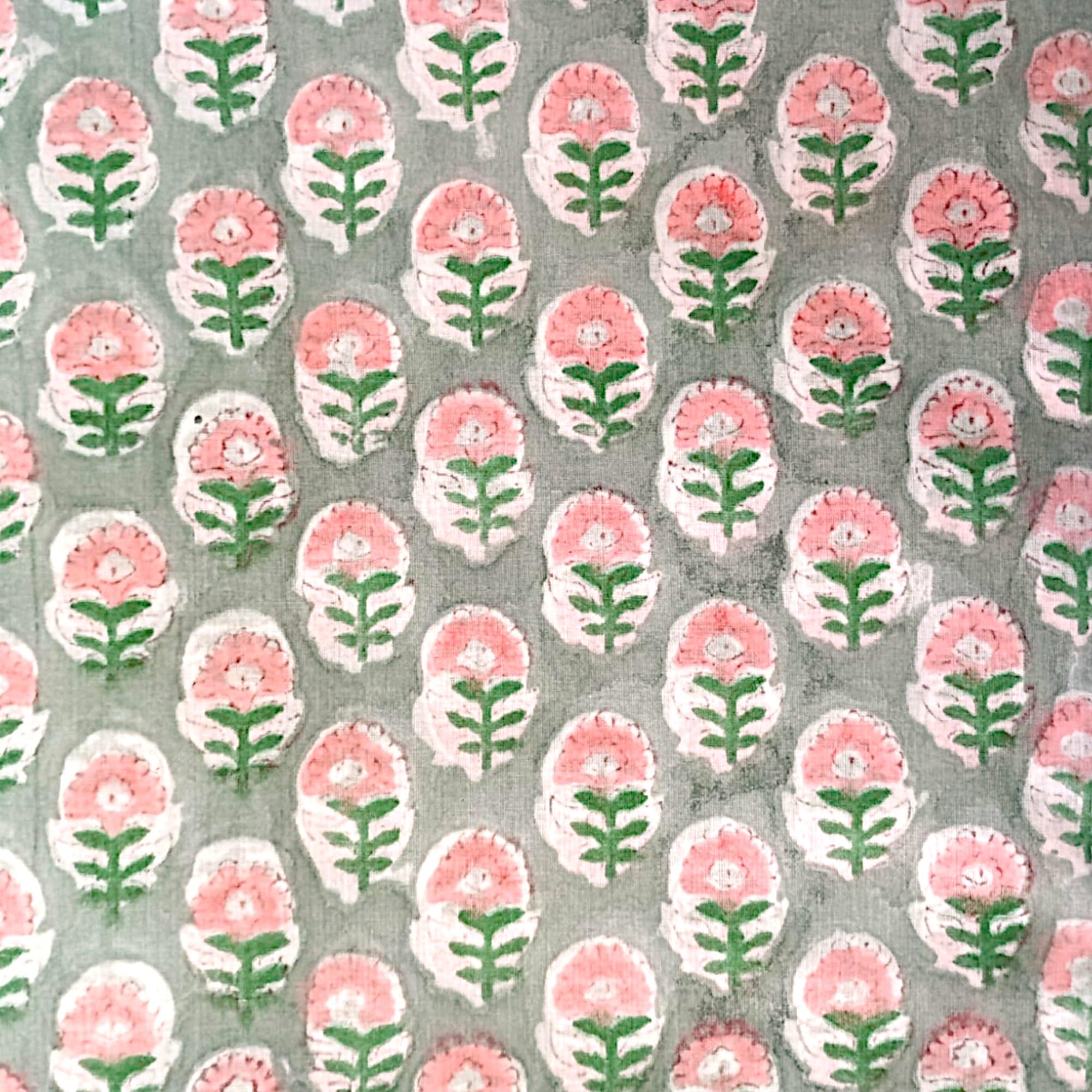 This is a hand printed fabric using wooden blocks or screens.