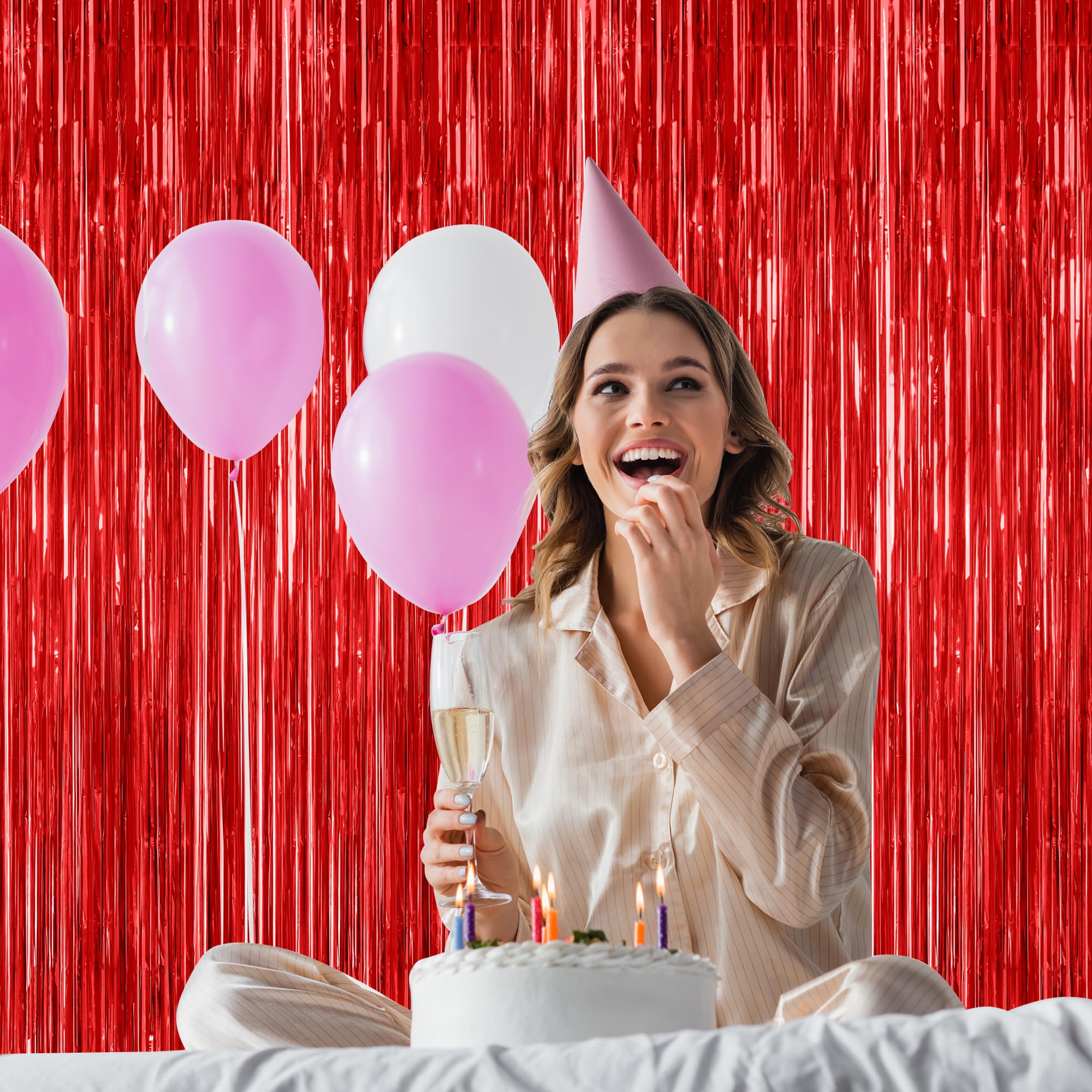 Package Contents: The package includes 8 pcs red tinsel backdrop, each with dimensions of 3.28 FT x 7.05 FT. These Valentines tinsel curtains can be trimmed to fit any specific area.