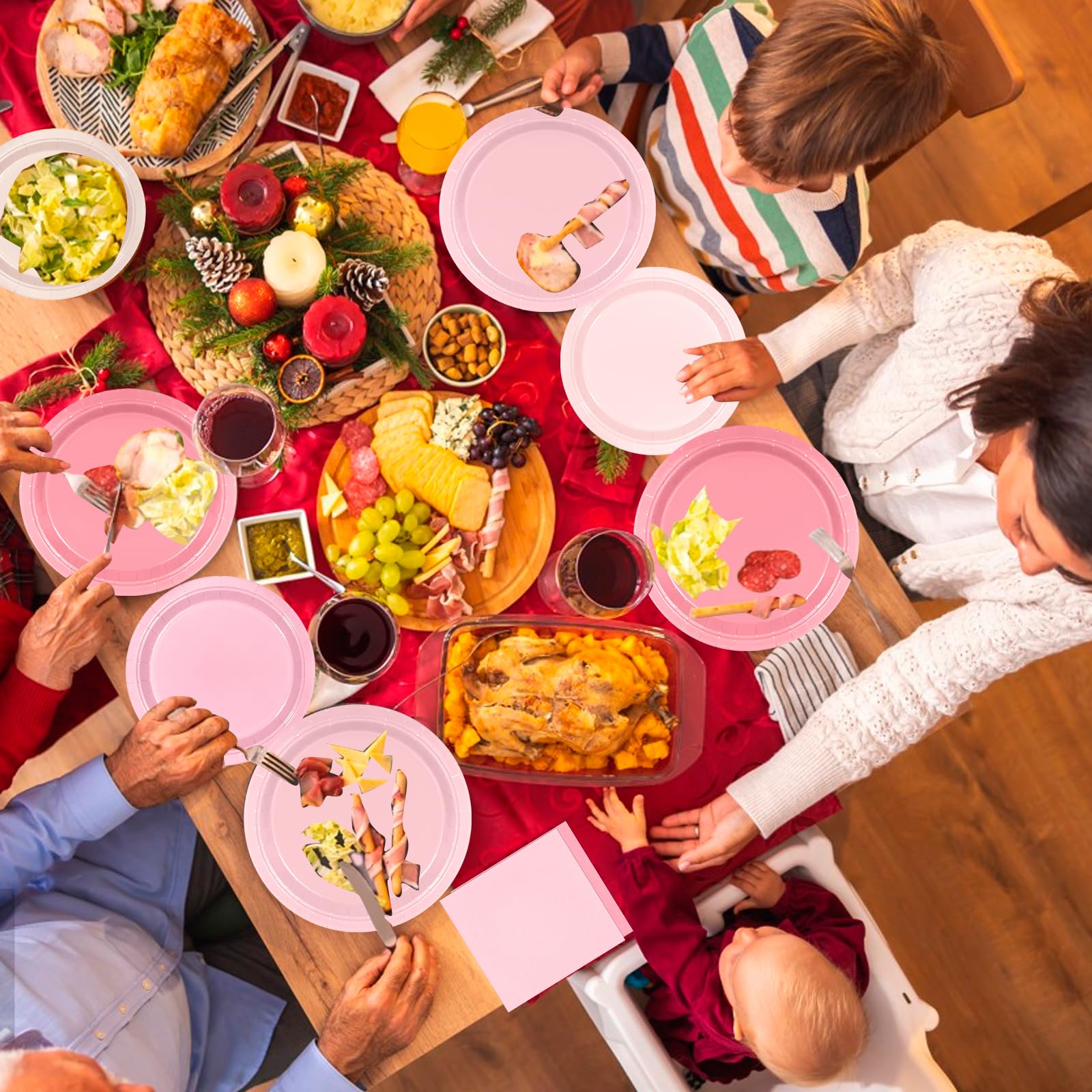 180 Pcs Plates and Napkins Set: This set includes 60 dinner plates (9.1"), 60 dessert plates (7.1"), and 60 napkins, perfect for serving up to 60 guests. From casual dinners to large celebrations, this all-in-one solution ensures a stylish, hassle-free dining experience every time