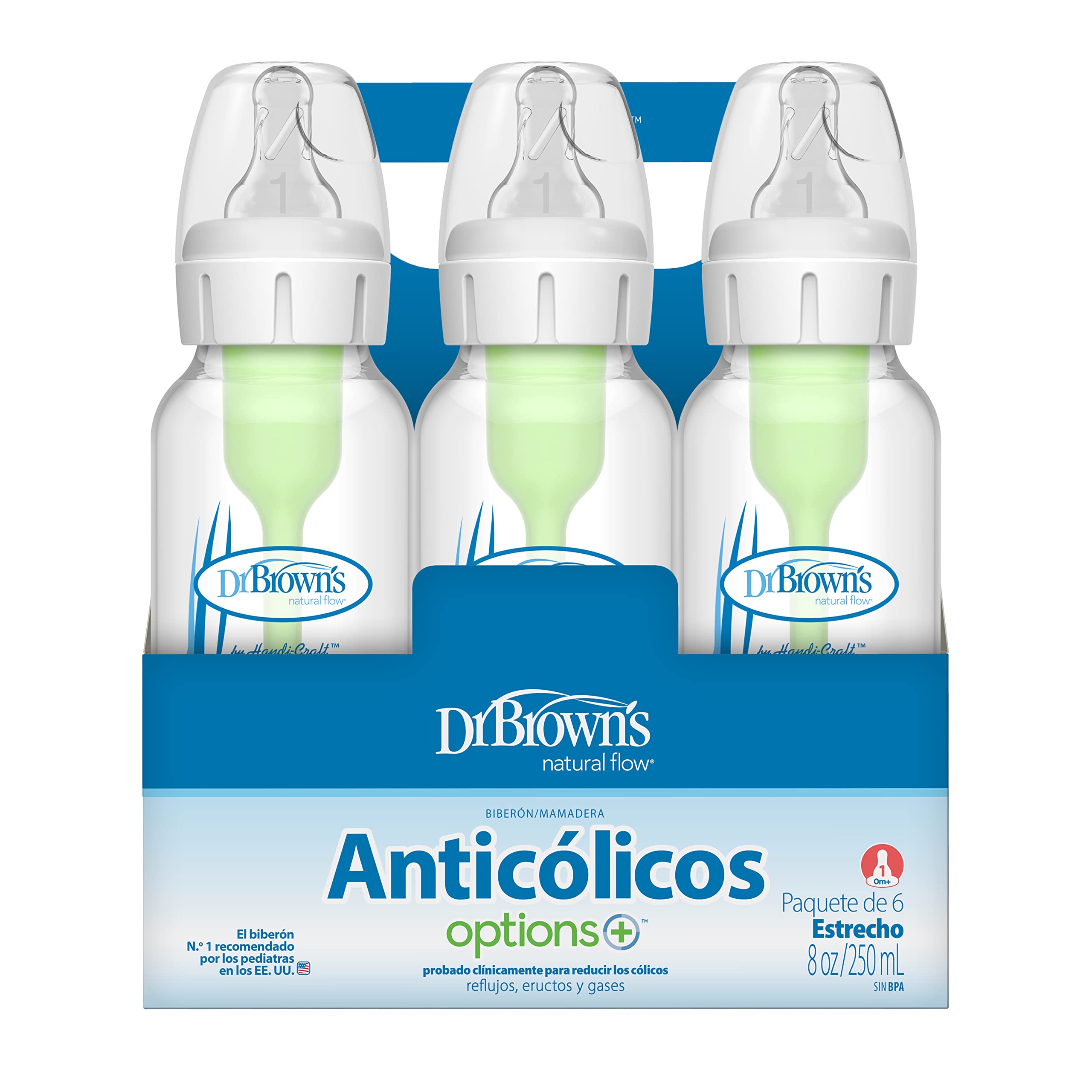 BOTTLE GROWS WITH BABY. Dr. Brown’s Natural Flow Anti-Colic Options+ baby bottle works best with the internal vent system in place but can be removed as baby’s feeding develops – no need to introduce a different bottle.