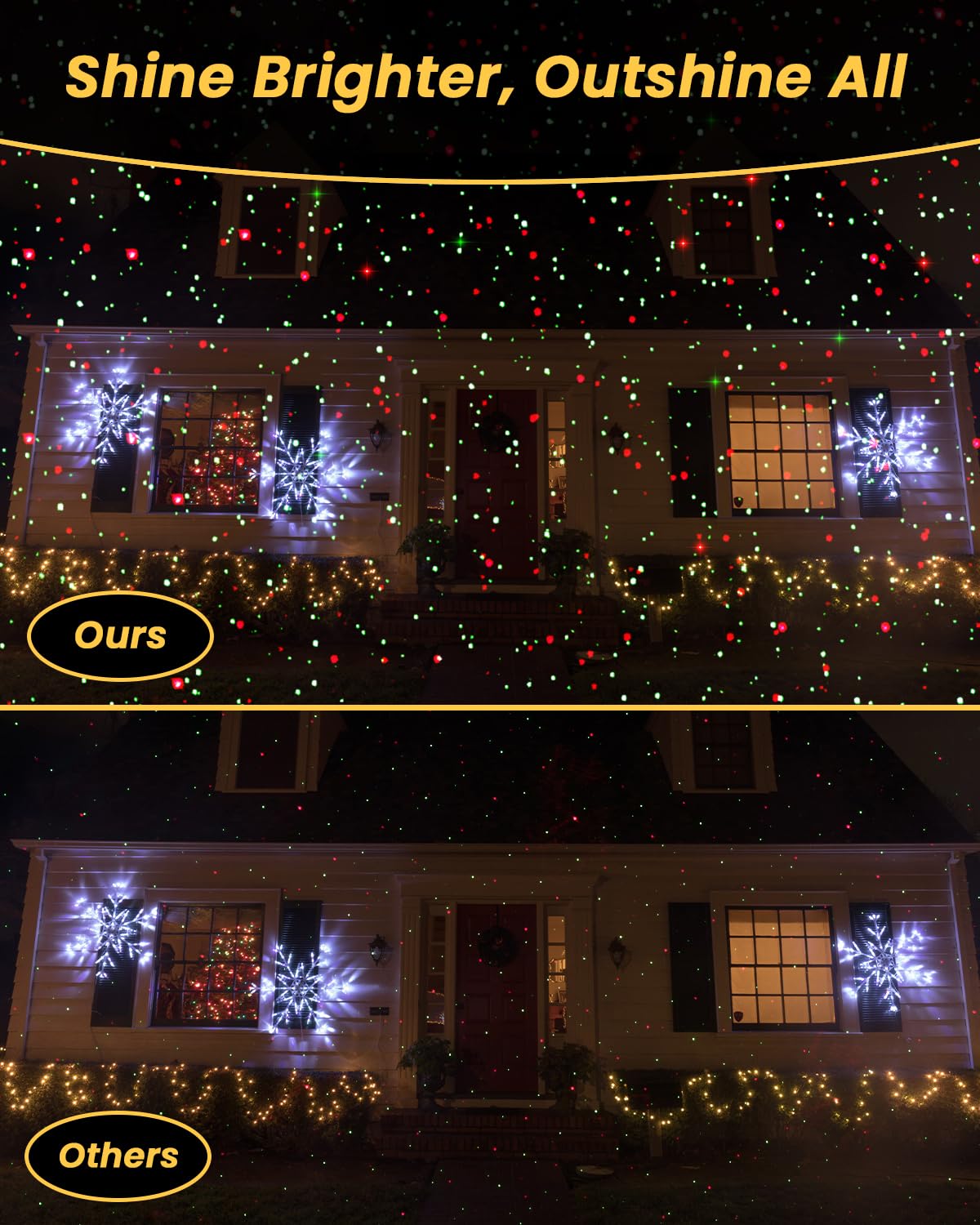 【IP65 Waterproof & Frost-Resistant】 Laser Projector with advanced cooling system: Engineered to operate flawlessly in extreme temperatures (-22°F to 104°F). The upgraded thermal dissipation tech guard against cold-induced component damage and summer overheating, ensuring years of durable, uninterrupted decor
