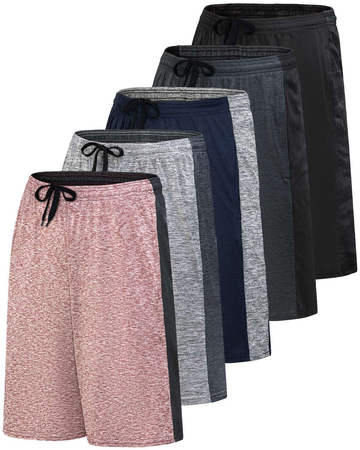 5 Pack Menβs Dry-Fit Shorts: Real Essentials menβs 9" inseam shorts for gym, basketball, running, soccer, tennis, pickleball, cycling, baseball, training, walking, jogging, or MMA workouts.