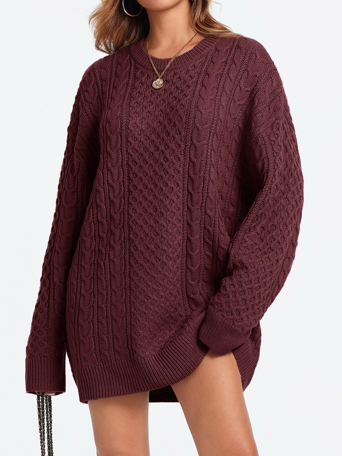 Feature: This tunic sweaters for women features crewneck, long sleeve, below hip length, cable knit, loose fit, chunky knit, slouchy baggy style, drop shoulder, ribbed hem, chunky cable knit sweater women, long sleeve sweater dress.