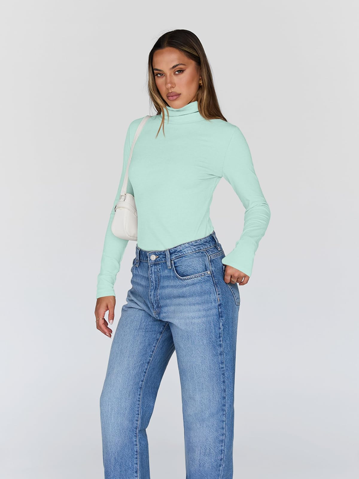 Trendy Queen Women's Turtleneck Long Sleeve Shirts Fall Fashion BasicThermal Underwear Tops Winter Clothes 2025 Sage M