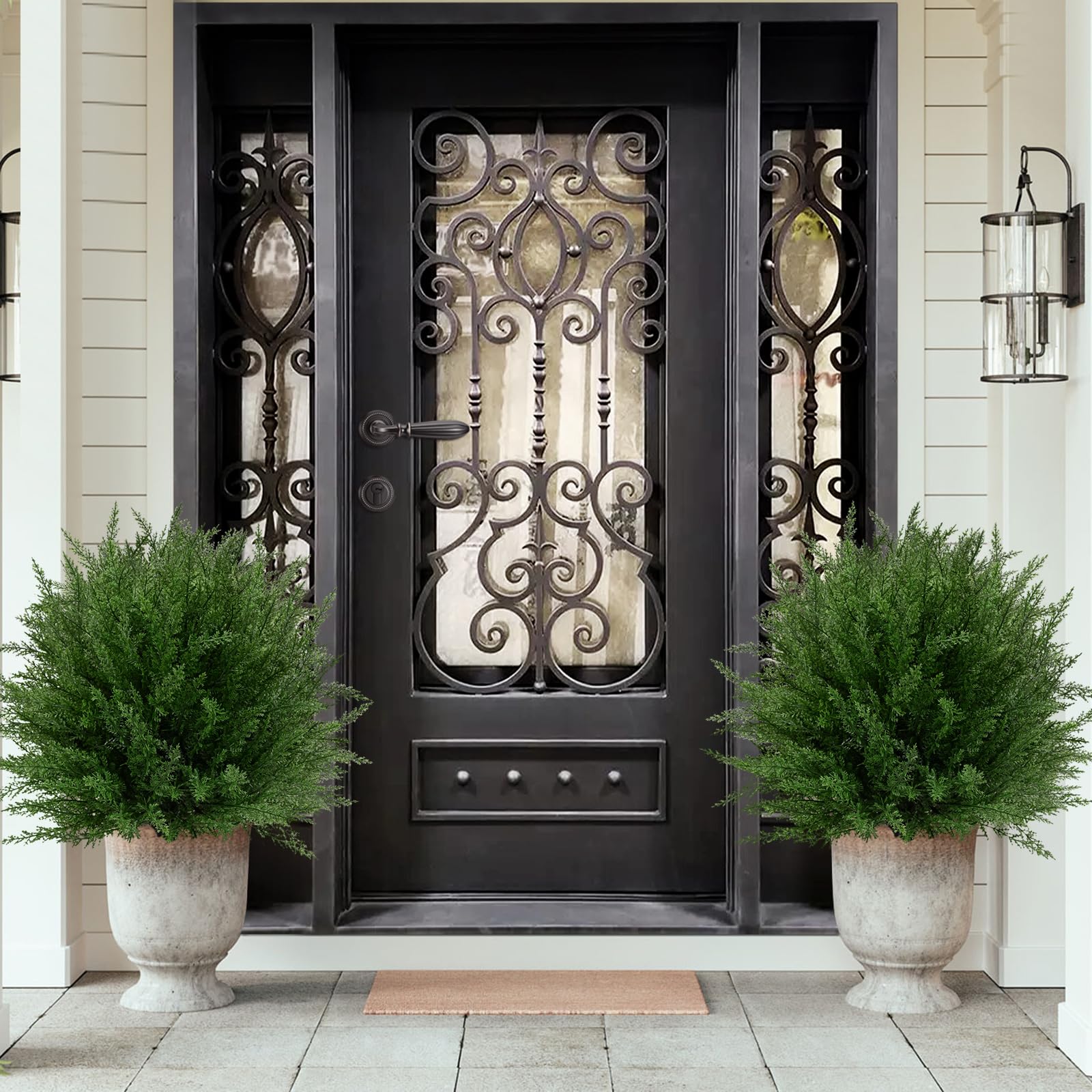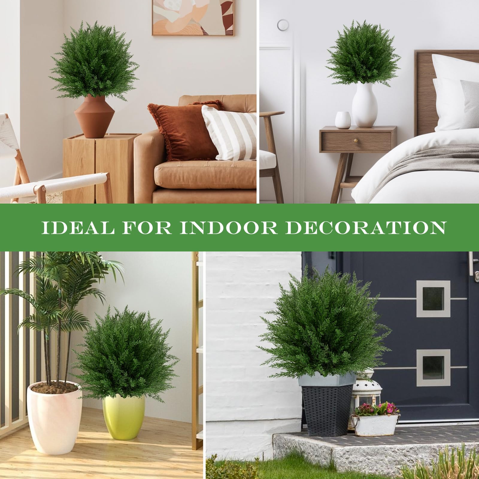 【Lifelike & Dense Cedar Foliage – 368 Branch Tips】Each fake bush ball features an impressive 368 branch tips, creating a fuller, denser look. The rich green color and natural texture give it a realistic, eye-catching appearance perfect for outdoor décor.