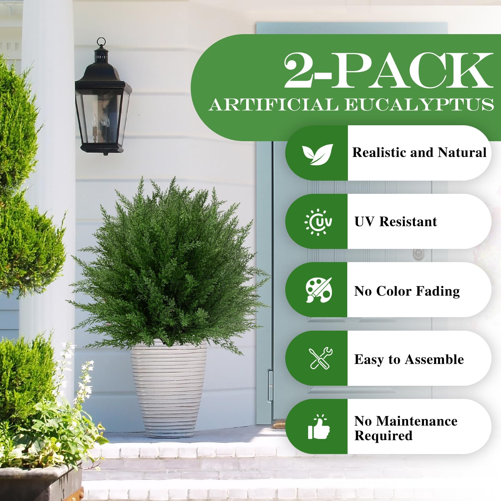 【Premium Weatherproof Materials – Fade & UV Resistant】Crafted from high-quality, UV-protected PE plastic, these artificial plants resist fading, cracking, and weather damage. They remain fresh and vibrant all year round, whether exposed to sun, rain, or snow.