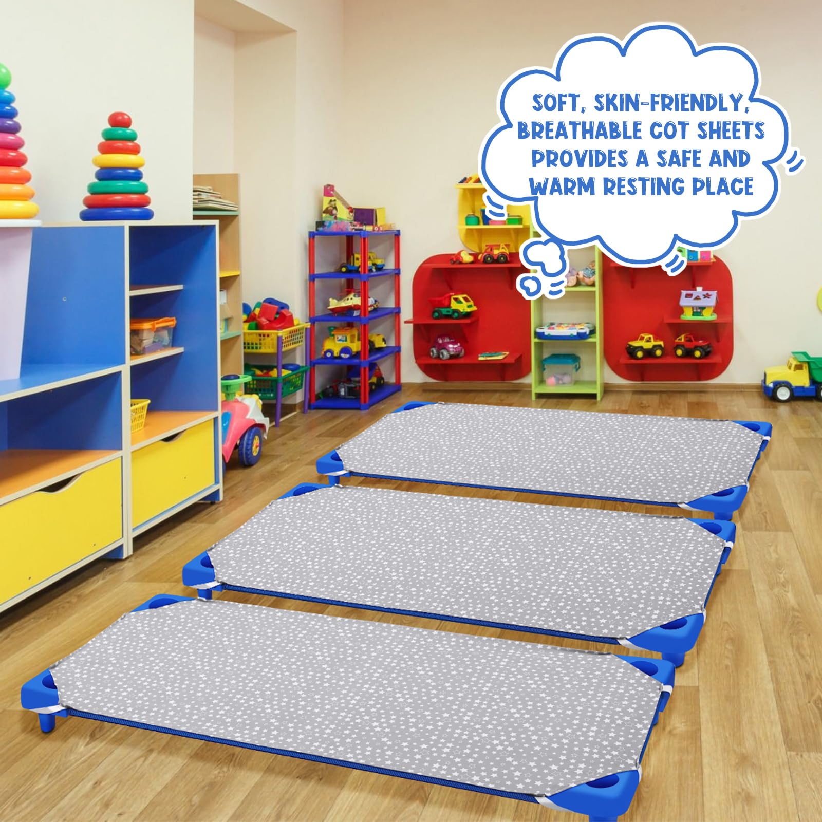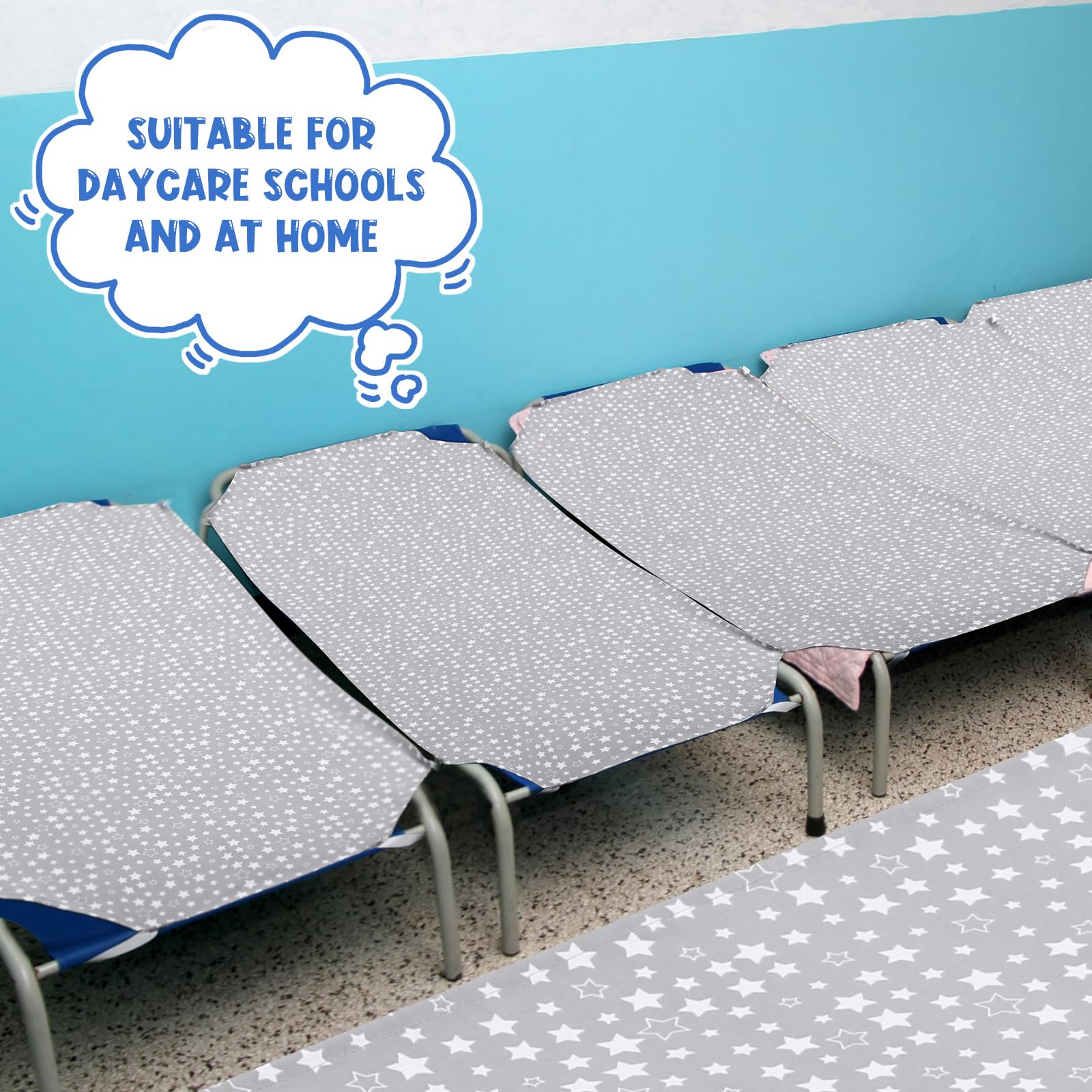 Quality Material: the daycare cot sheets are made from a durable poly/cotton blend, soft, comfortable, and breathable, are gentle on your child's delicate skin, helping children and toddlers sleep easily during a nap or rest time