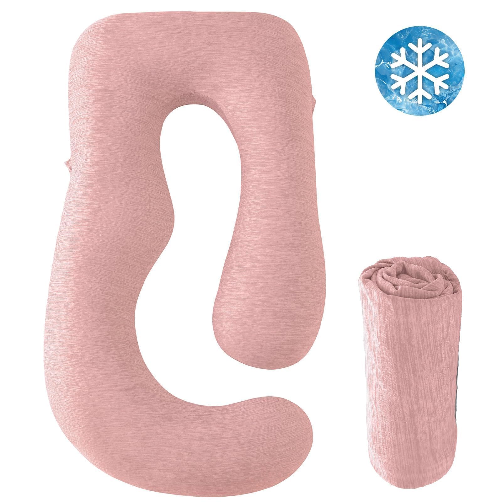 Sasttie Cooling Pregnancy Pillow Cover, 57-inch U Shaped Pregnancy Pillow Case, Fits 55 to 57 Inch Maternity Pillow, Blush (No Pillow Insert)