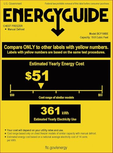 Deep Freezer Storage: Large 19.8 cu. ft. capacity holds a substantial amount of frozen foods including cold meat, frozen dinners and ice cream. Keeps perishables frozen for your home or garage