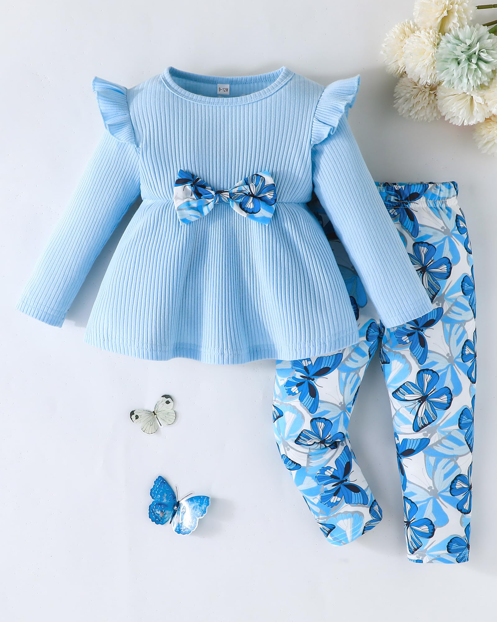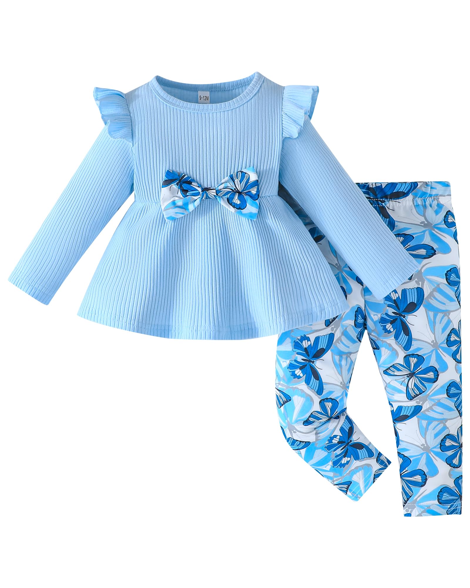 Cute Bow & Vibrant Butterfly Patterns: This Infant to Toddler Girl Clothes Sets Replaces Boring Basic Wear for 6M-4Y Girls' Social Events - Boosts Charming-Look with Photo-Ready Cuteness!