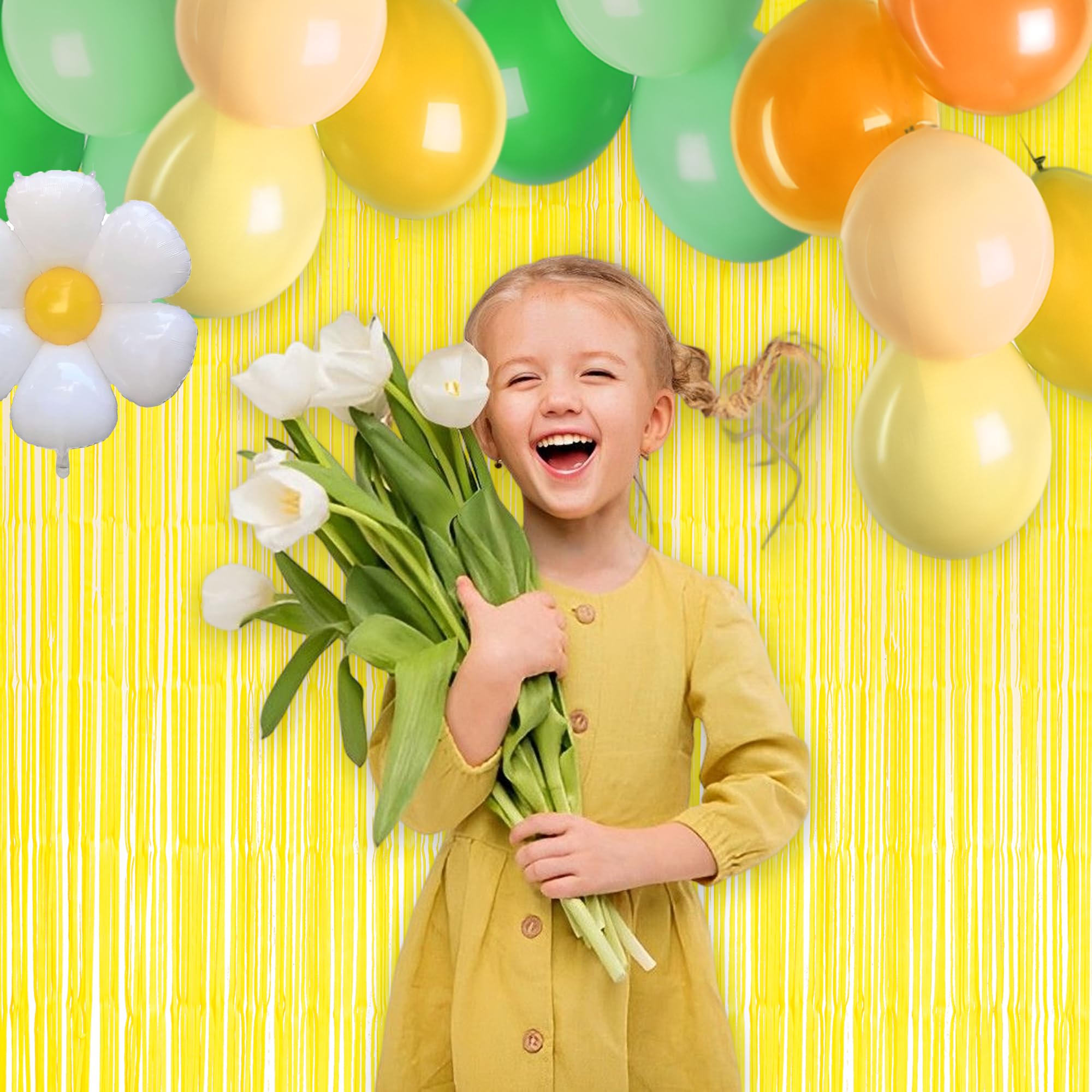 Elevate your party with our Yellow party backdrop streamers, it can creating a vibrant and cheerful atmosphere with themes like Sunflowers, bee-inspired gatherings, and dazzling tinsel backdrops.