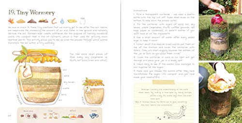 Kids will love this watercolour illustrated book packed with outdoor and nature-related craft projects! When children are outside and interacting with nature, they learn lots about the world through fun, creativity and skill-building. Tiny Explorers: Into the Wild is a book for children of all ages. With heaps of ideas for outdoor fun, children will engage with nature with all their senses while learning, making nature-inspired art, getting closer to wildlife, crafting and having fun. This is the perfect way to keep even the tiniest of explorers entertained for hours. Check the Look Inside and the product images for details. 33 GREAT OUTDOOR PROJECTS - Each activity is set to bring little explorers closer to nature with catchy descriptions, beautiful illustrations, photos and step by step indications. 30 OTHER IDEAS - Most of the above-mentioned activities feature a variant of the main activity summing up to 30 such ideas. 8 TAKE IT FURTHER SECTIONS - This section suggests ways in which the activity can be further worked on for a more impressive result. WATERCOLOUR ILLUSTRATIONS - Beautiful illustrations to complement the step-by-step activities perfectly, make nature more appealing to children and keep them interested in spending more time outside. HELPFUL ICONS - Not sure which one to pick? The top icons will suggest which tools and materials you might need to complete the activity. Bottom ones will help you decide which activity to pick based on messiness, time, effort and theme. Loved this book? Want to find a way to store all of your memories and creations? Check out the companion workbook Tiny Explorers: Into the Wild - Build Your Own Nature Journal Have fun exploring!