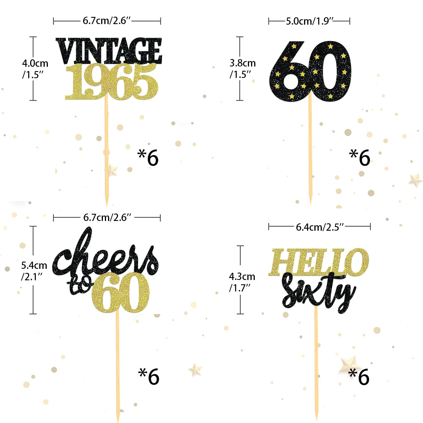 What you will get: 24pcs 60th birthday cupcake toppers, these cupcake toppers is the perfect decoration welcome your friends to your 60th birthday party.