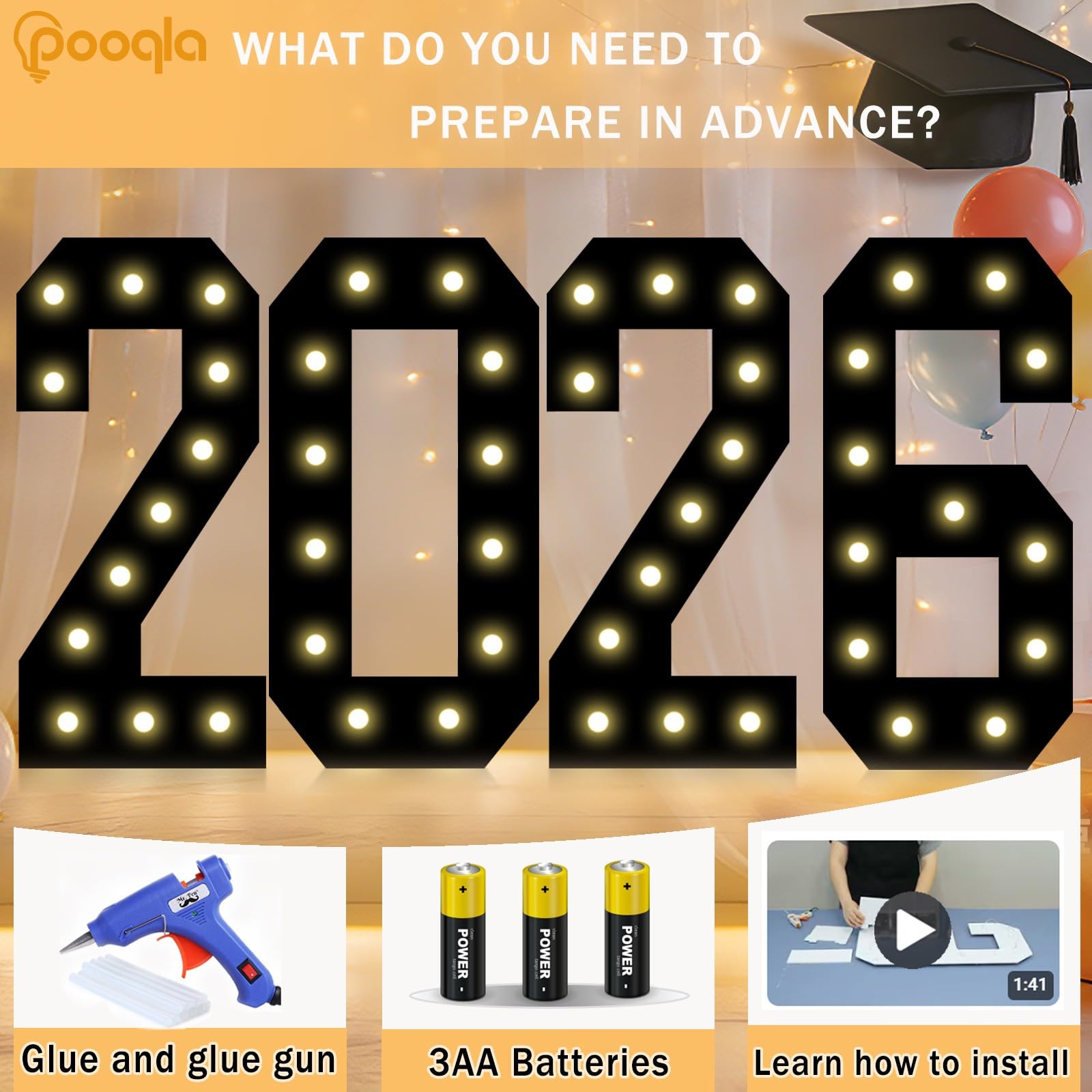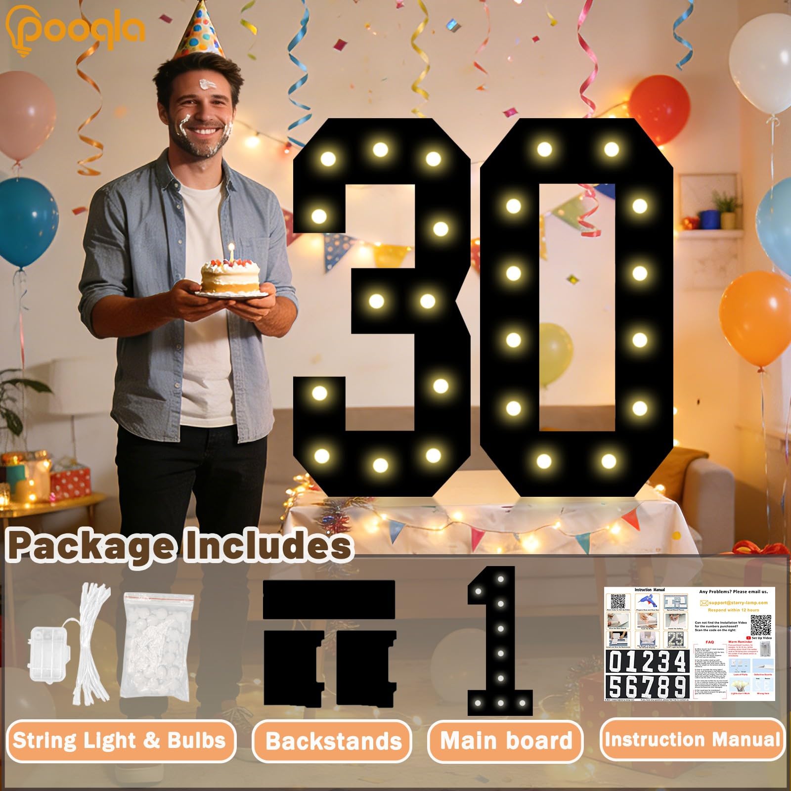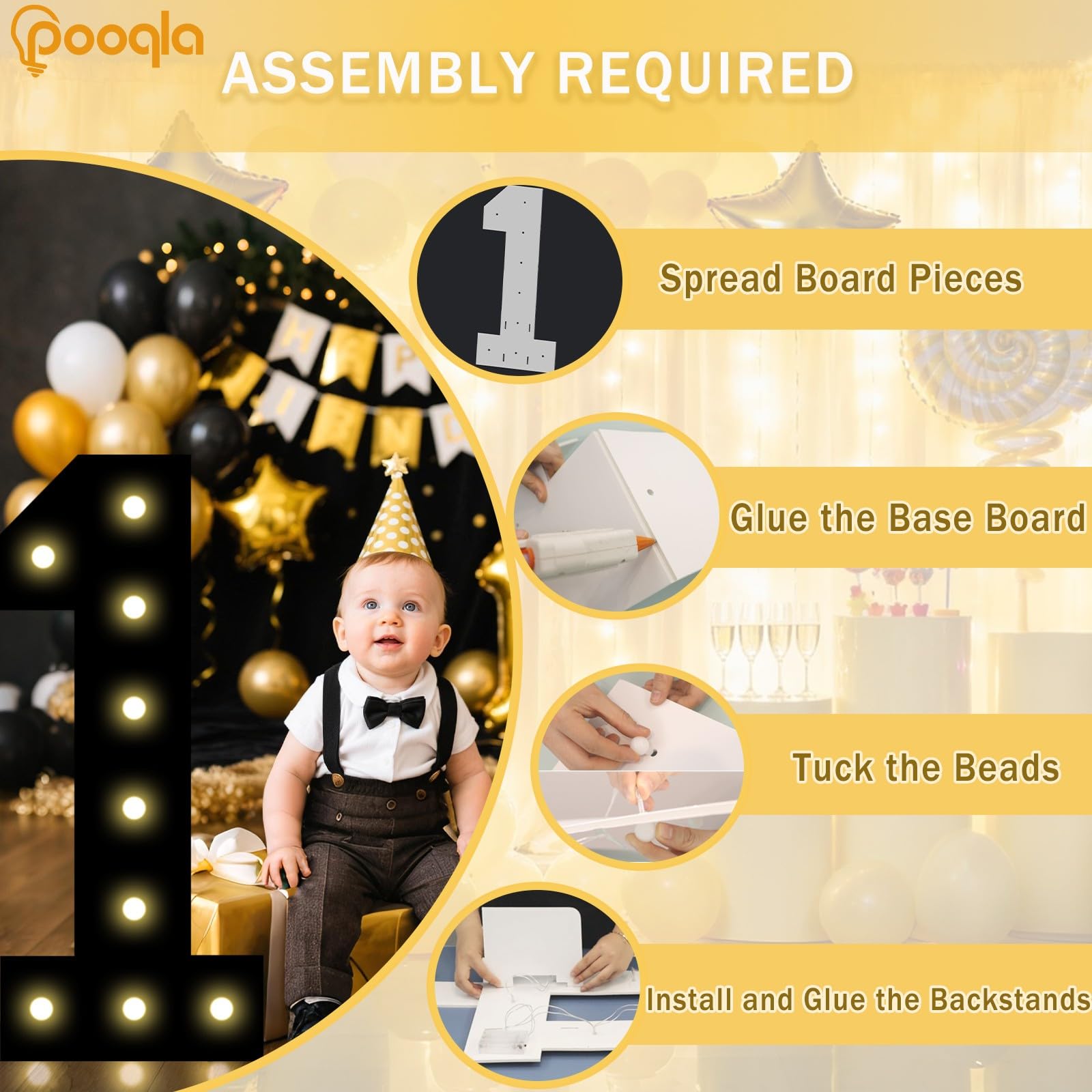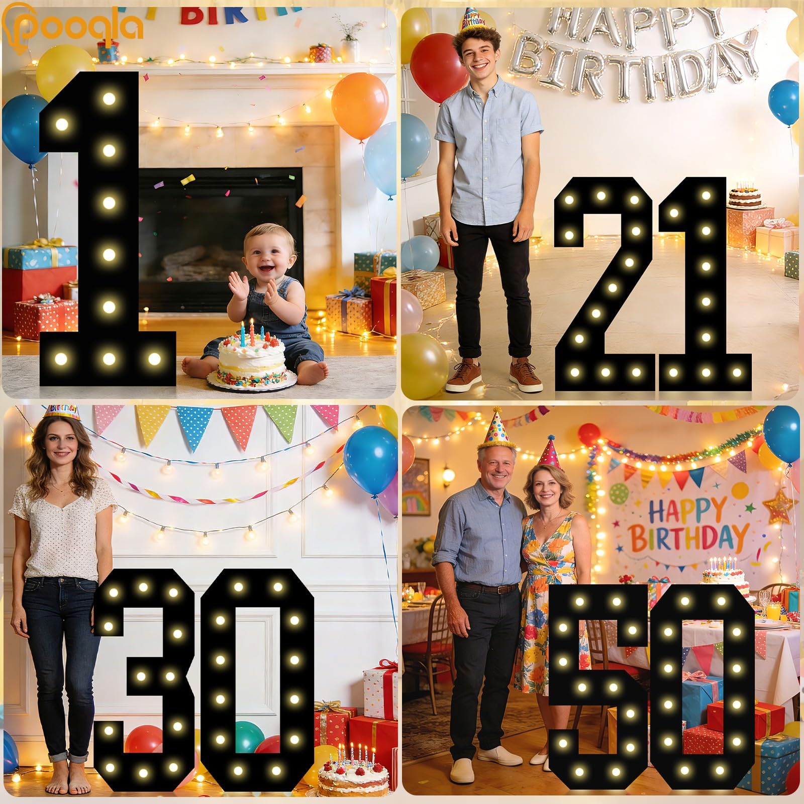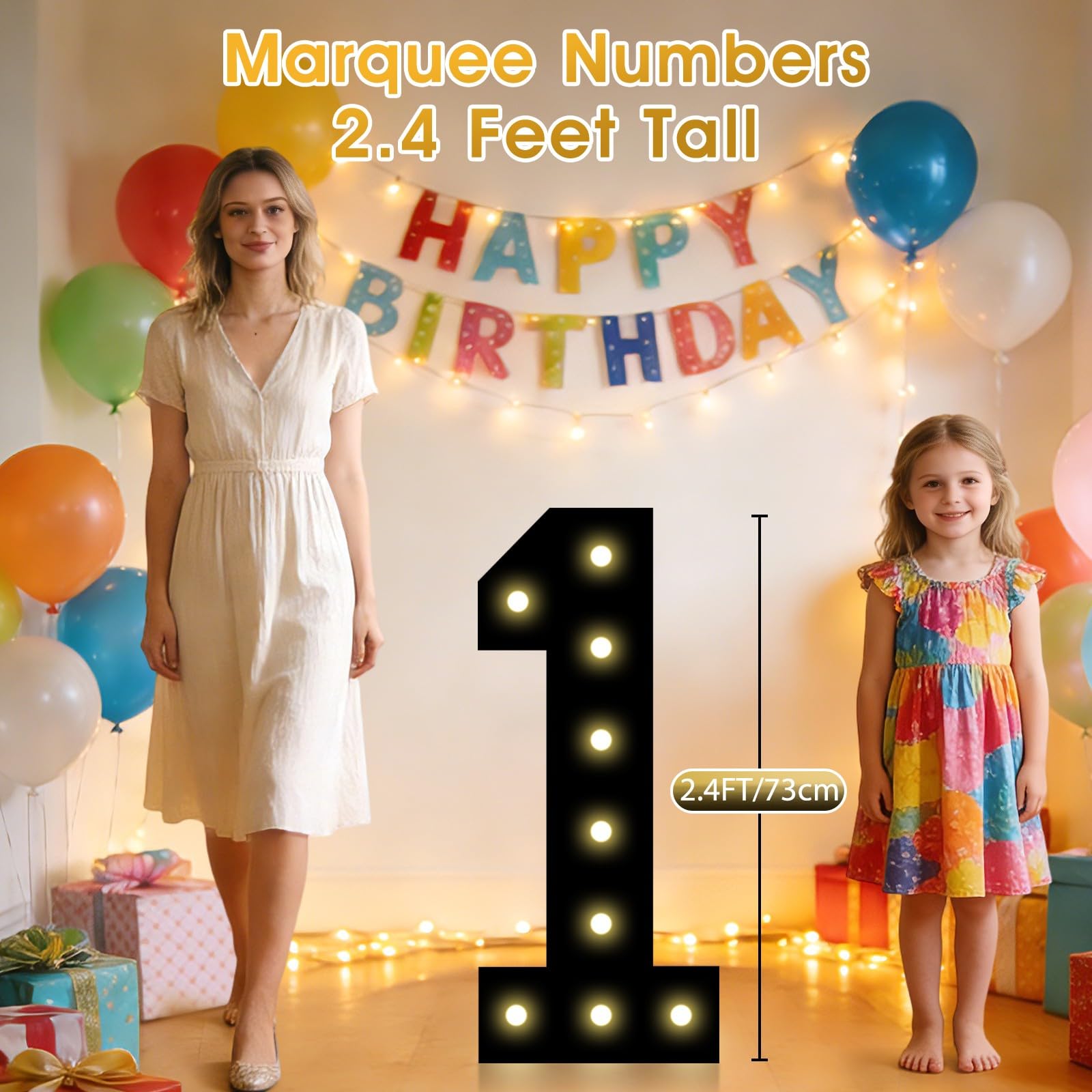 Giant Black 2.4 Feet Marquee Numbers with LED Lights: Mosaic numbers designed with warm white LED string lights. Giant LED numbers can be powered by 3 AA batteries (Not Included), convenient for all kinds of party decoration