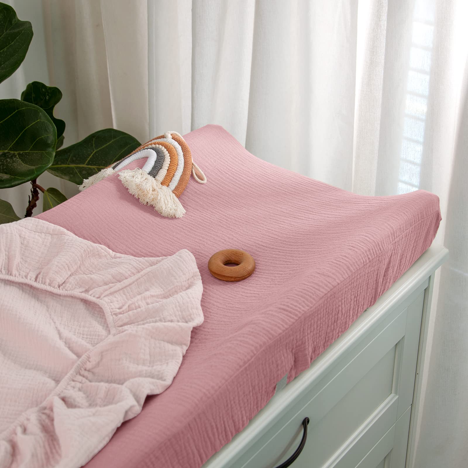 SOFT AND BREATHABLE: Our changing pad covers is made of 100% muslin cotton. The touch is soft and comfortable, which is very suitable for infant sensitive skin. Lightweight and breathable fabric will keep your baby cool and comfortable.