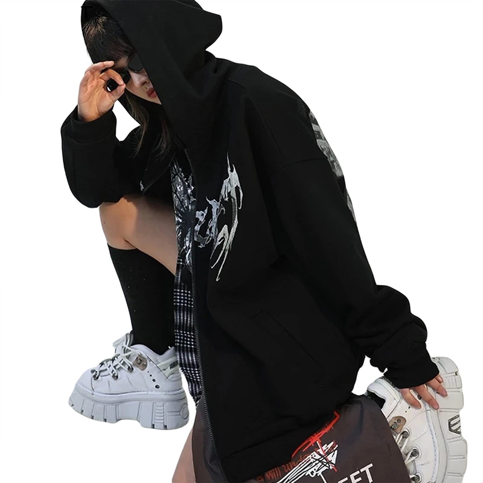 ★Match: Vintage graphic zip hoodie is very versatile, can be worn with loose jeans, wide leg pants, flared pants, camisole, tank top, open back crop top, high heels, knee boots, casual shirts, sneakers. When it's cold, you can wear a bottoming sweater inside to keep you warm. Y2k hoodies, hoodie y2k, y2k jacket.