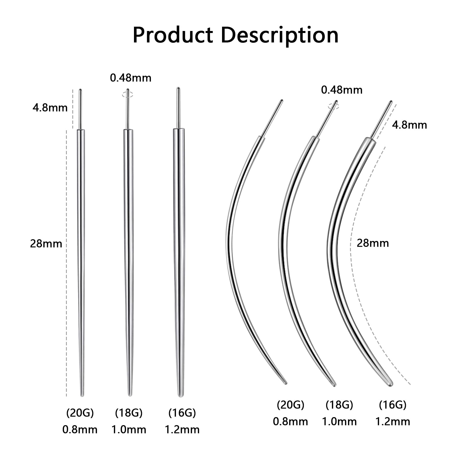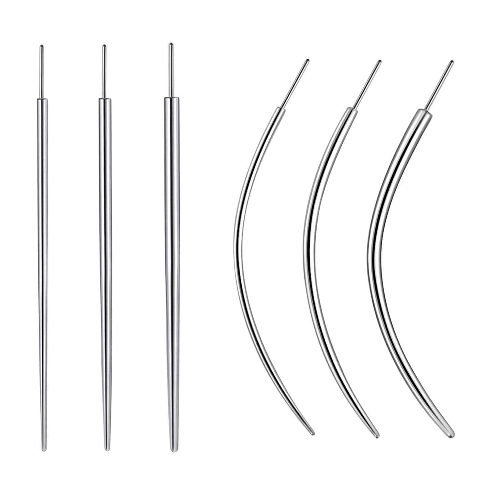 【VALUE PACK】6Pcs 16G(1.2mm) / 18G(1.0mm)/ 20G(0.8mm) Threadless Piercing Changing Tools, Curved & Straight piercing taper insertion pin 1 pcs of each