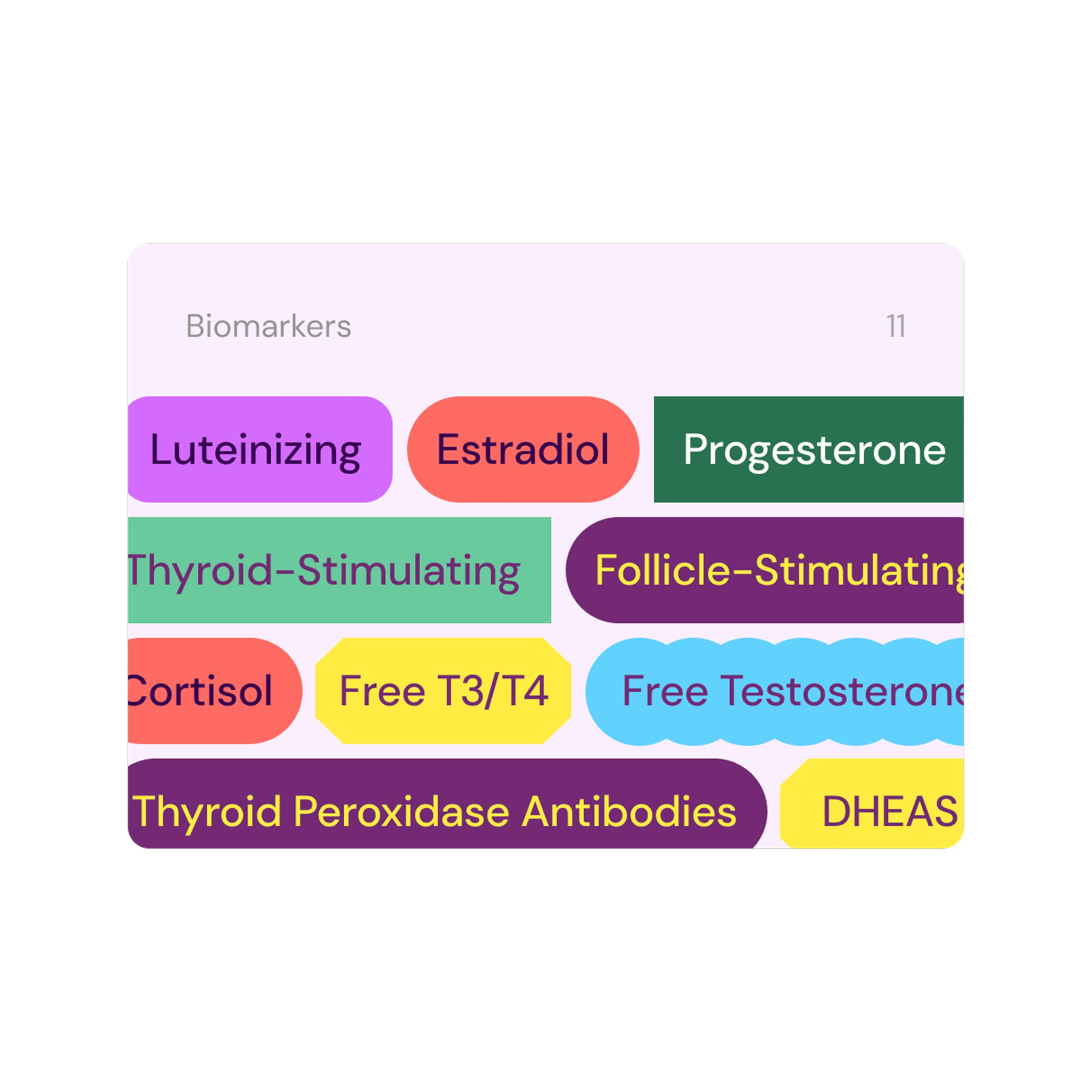 UNDERSTAND HORMONE CHANGES: Measures 11 key biomarkersโincluding estradiol, progesterone, and cortisolโto help uncover hormonal imbalances that affect energy, weight, mood, skin, and more.