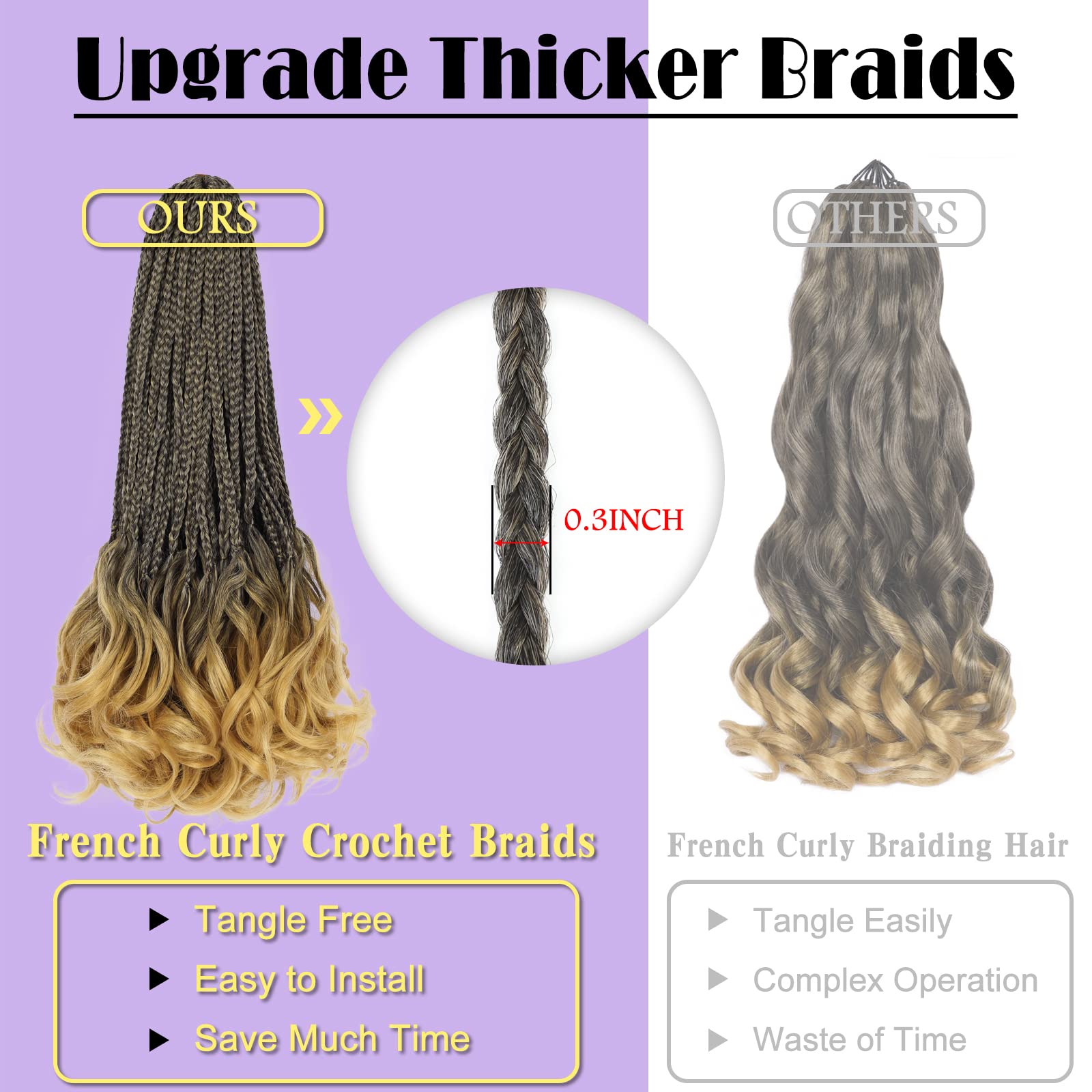 Upgraded Crochet Hair:French curl crochet braids is made of box braids crochet hair with loose french curls,based from french curl braiding hair,new trendy crochet hair for black women,touched feels like human hair crochet hair
