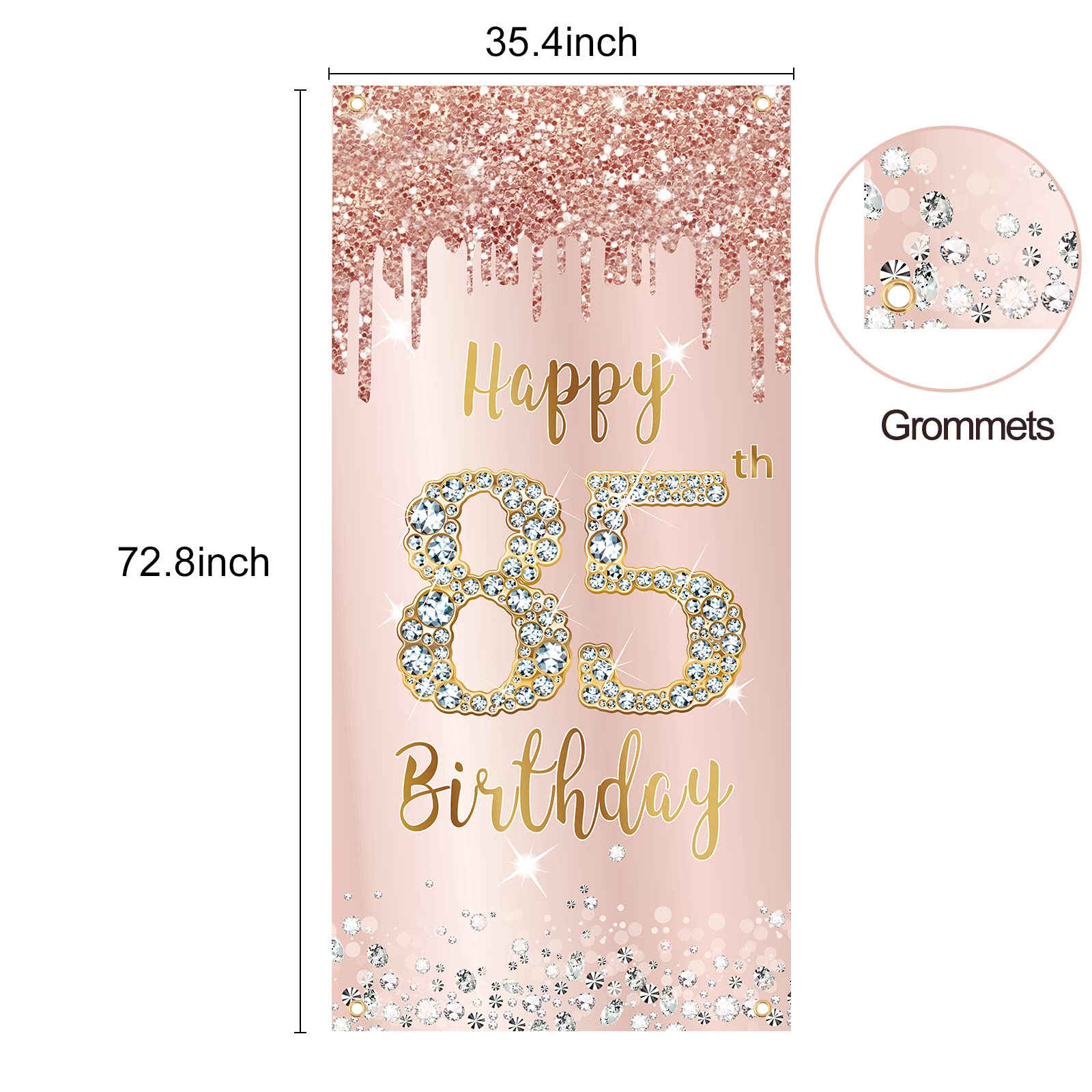 [You will get] - Pink rose gold 85th birthday door banner decorations for women, 72.8 X 35.4 inches, enough to decorate the 85th birthday party, making your 85th birthday party full of vitality and fun.