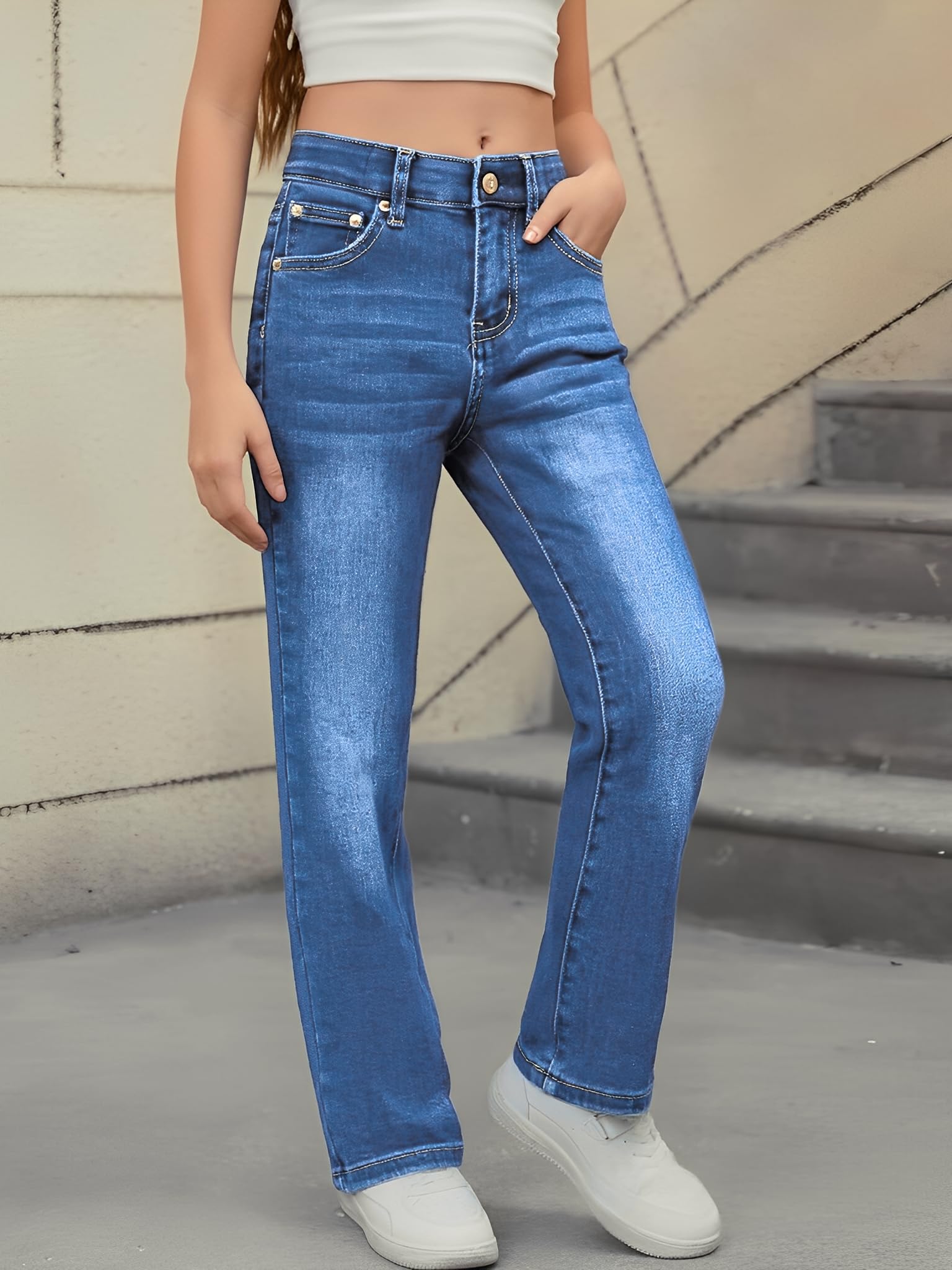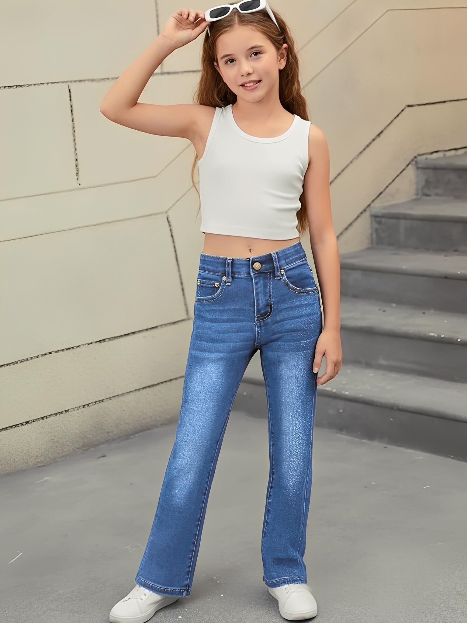 Description PATPAT Girls Bootcut/Wide Leg/Ripped Jeans 4-14 Years High Waisted Ultra Stretch Baggy Jeans