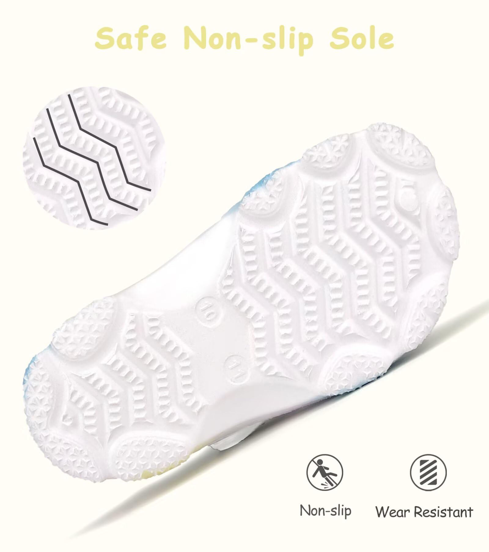 Comfortable Kids Shoes: Crafted with sturdy materials and a reliable grip. Arch supports and wide toe box design ensure the healthy growth of little feet, truly enhance all-day comfort for those little feet.