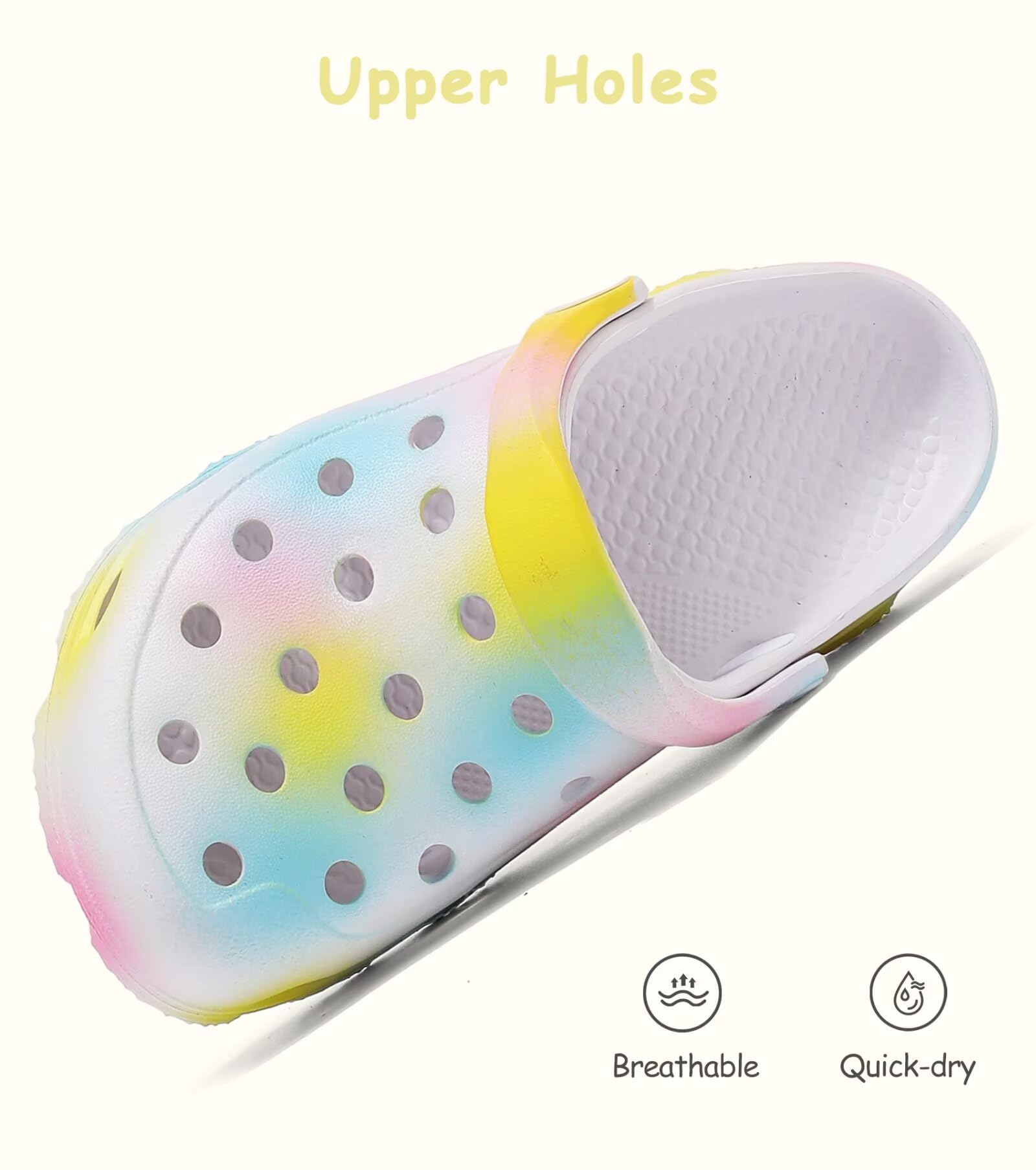Non Slip Clogs: Non-slip sole texture and midsole non-slip particle design, allowing children to step on water confidently. Perfect for adventurous boys/girls exploring the world.