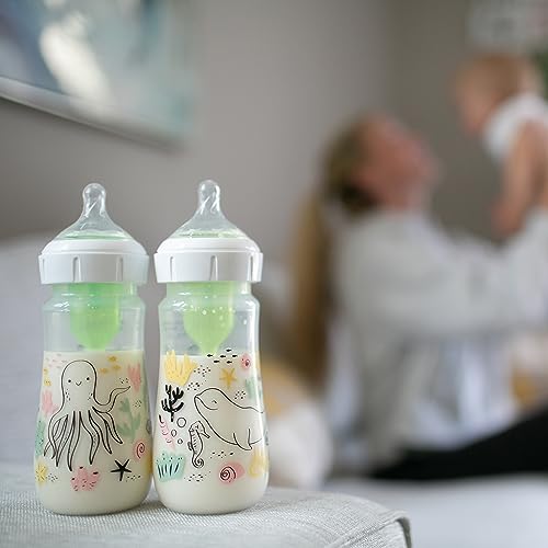 Dr. Brown’s Natural Flow® Anti-Colic Options+™ Wide-Neck Baby Bottle Designer Edition Bottles, Ocean Decos, 9 oz/270 mL, Level 1 Nipple, 2-Pack, 0m+