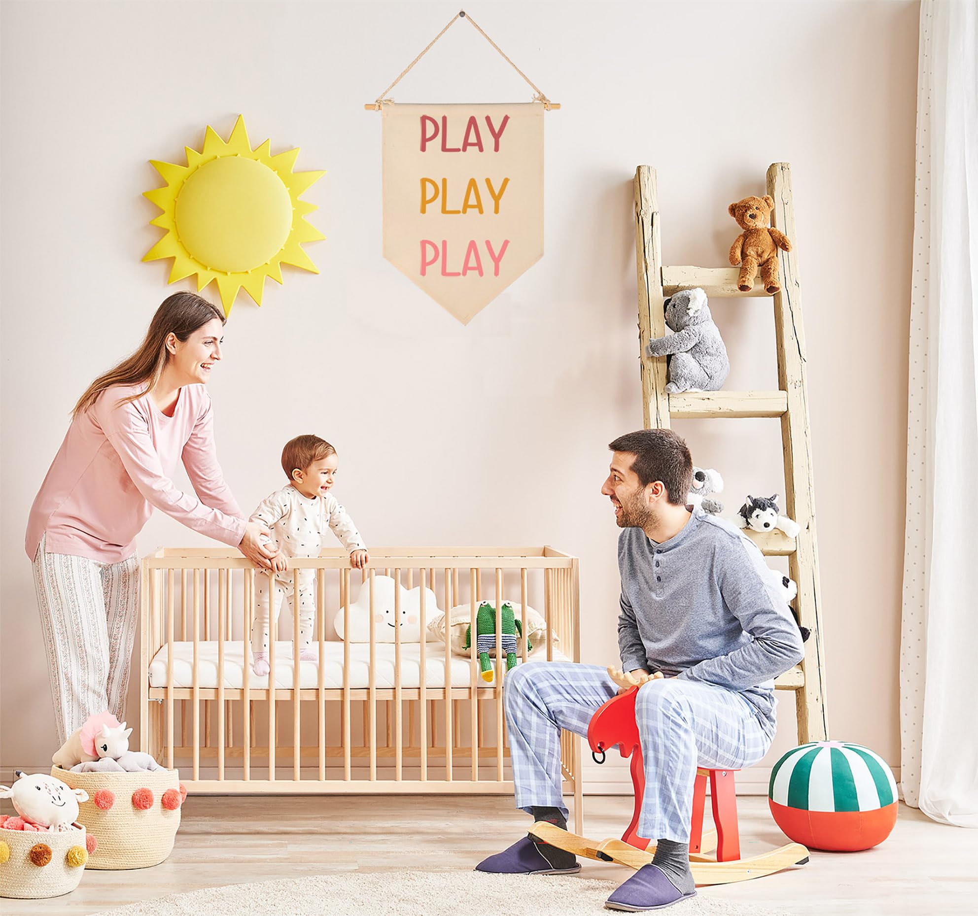 Cotton Canvas Material – Crafted from quality durable cotton canvas,strong and lightweight, sturdy and reliable, which can be applied for long term use, this banner keeps its natural texture and shape, with clear print that stays bright for everyday nursery display,this sweet banner blends well on any wall color
