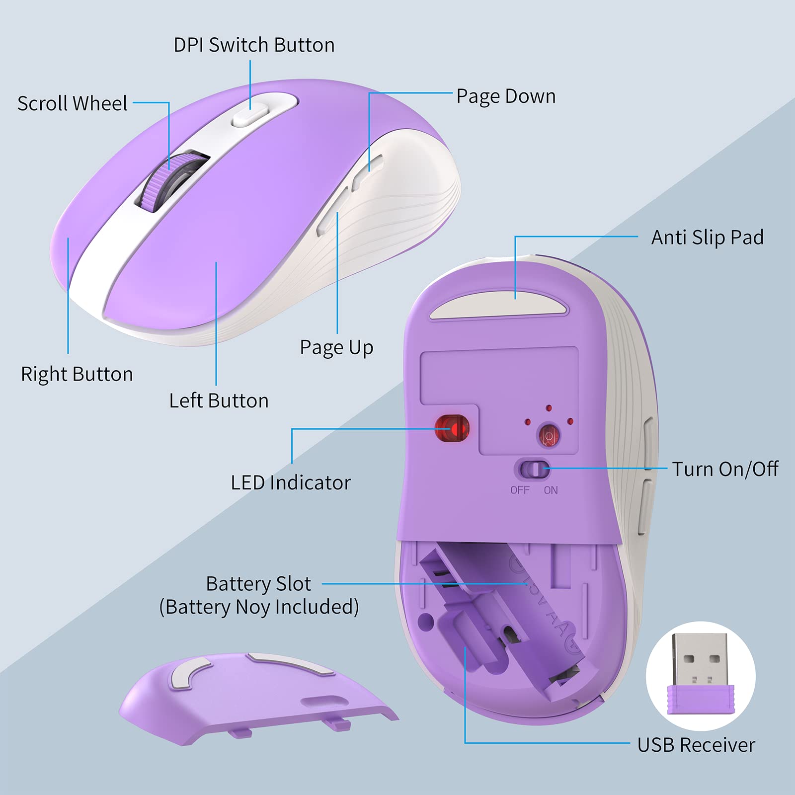 Silent Mouse with 6 Button(800/1200/1600 DPI Adjustable);