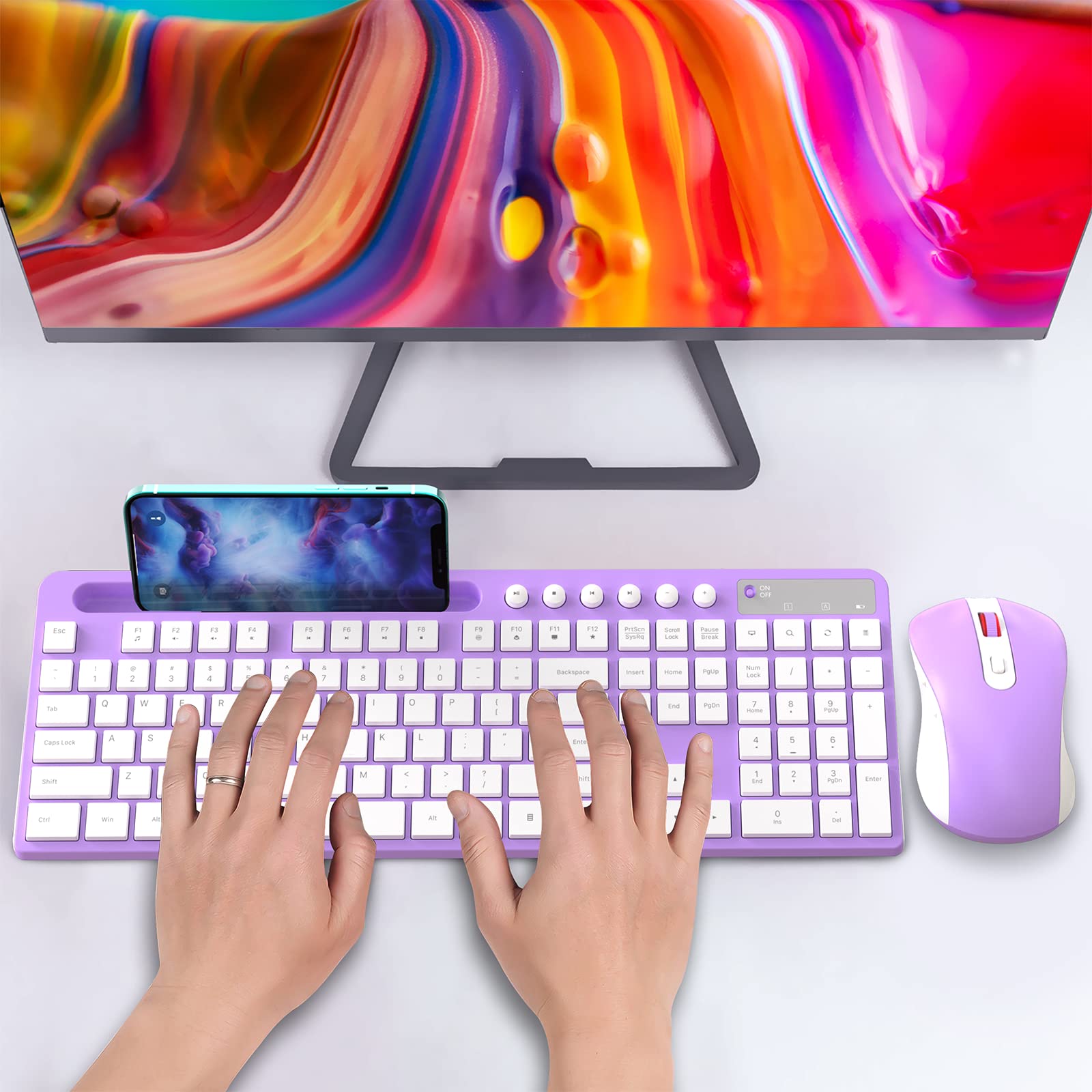 2.4G Ergonomic Wireless Computer Keyboard with 9.84inch Phone Tablet Holder;