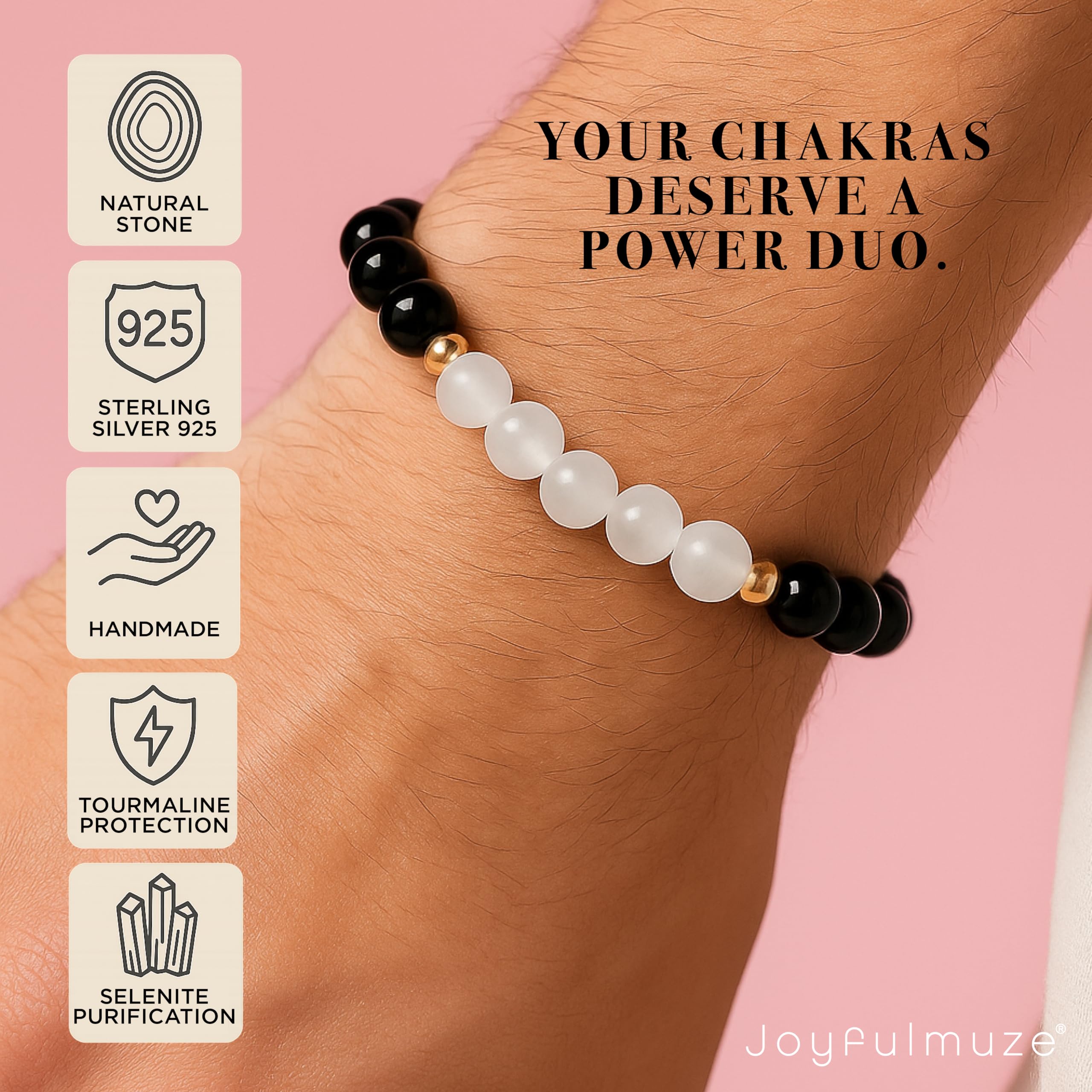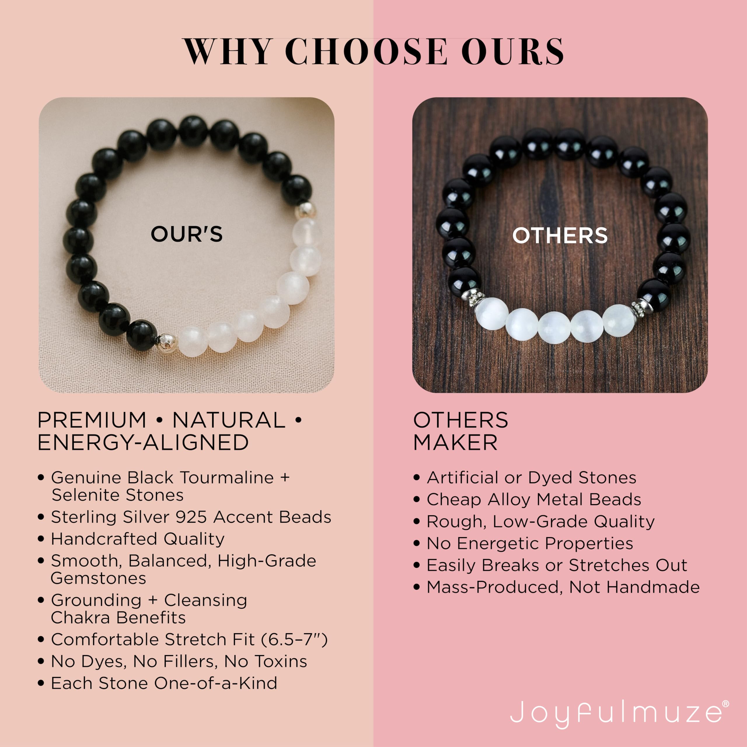 QUALITY MATERIALS: Natural Black Tourmaline and Selenite bracelet is perfect for any occasion. The beads are 8mm in diameter and fits anyone who has 6.5-7 inches wide wrist.